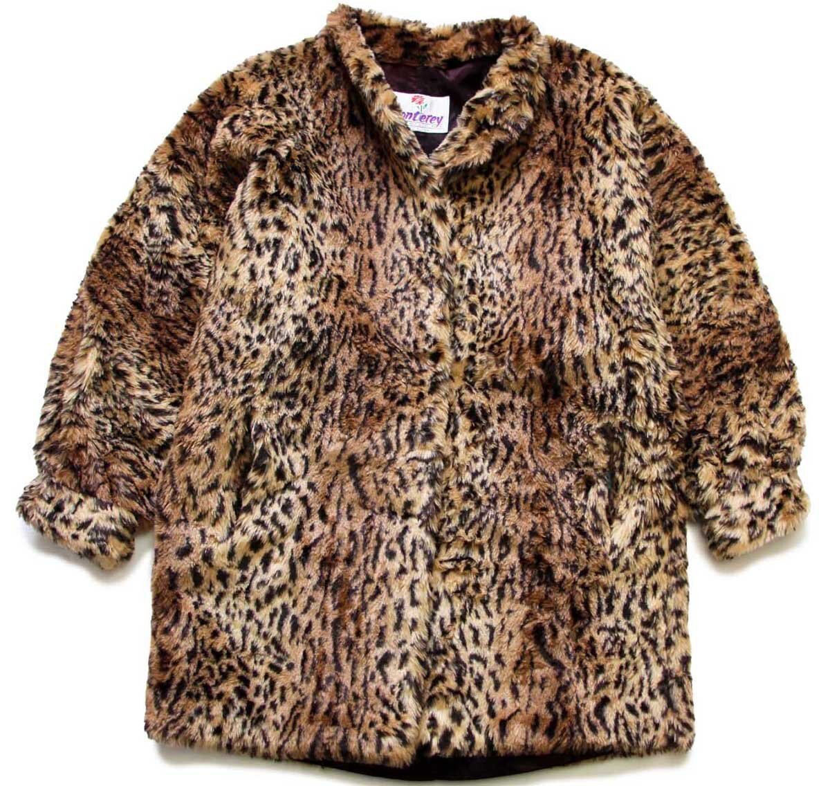 ★80s USA製 Monterey FASHIONS レオパード柄 ドルマンスリーブ フェイクファーコート 14★ビンテージ オールド アニマル オーバーサイズ