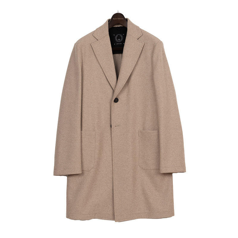 イタリア製羊毛ウールノッチドラペル 2ボタン シングルチェスターコート