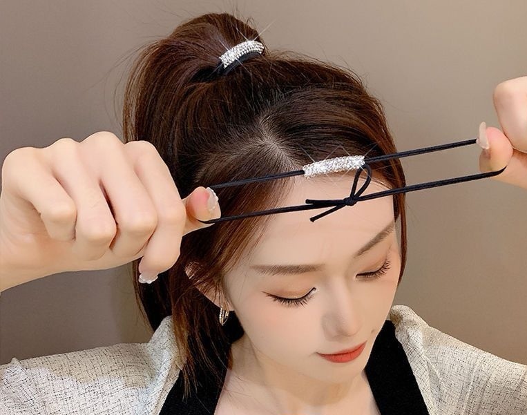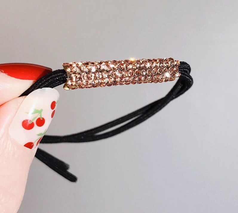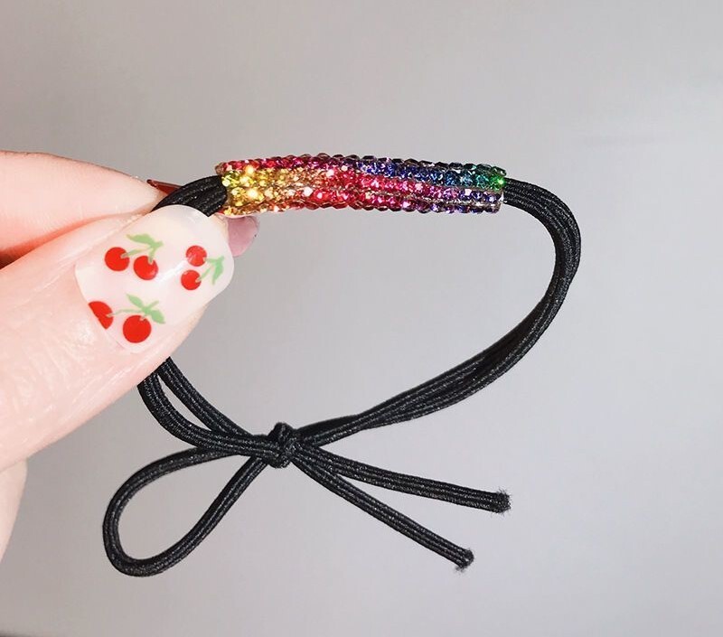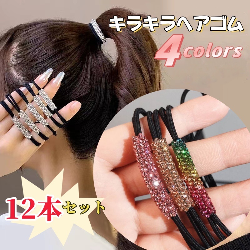 ラインストーンが施された可愛らしいデザインのキラキラヘアゴムです。 | ||