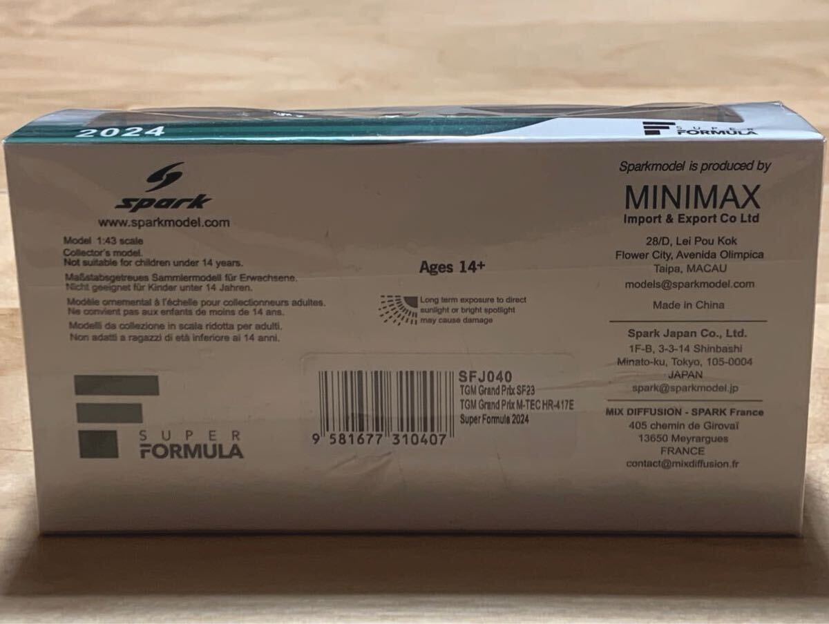 Spark スパーク 1/43 ダラーラ Dallara SF23 スーパー フォーミュラ SF SUPER FORMULA TGM Grand Prix Juju 野田樹潤