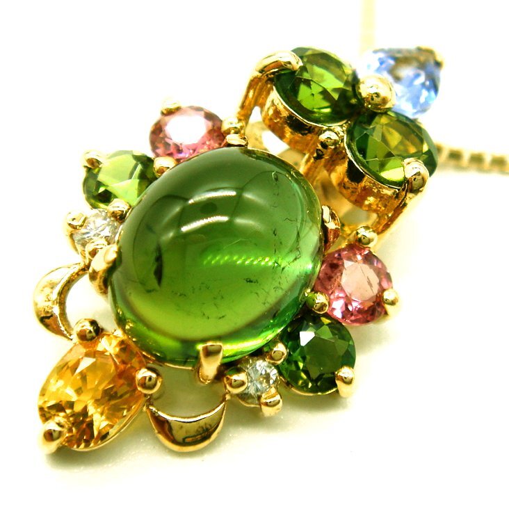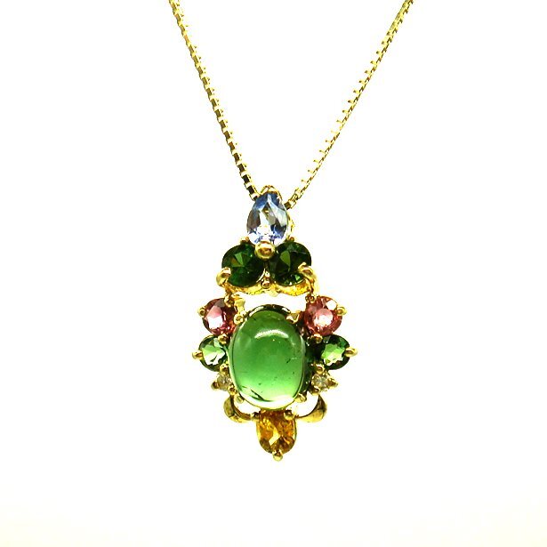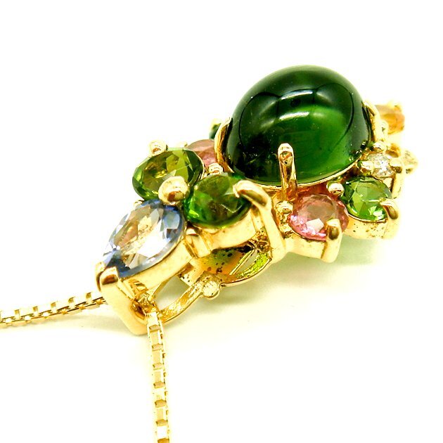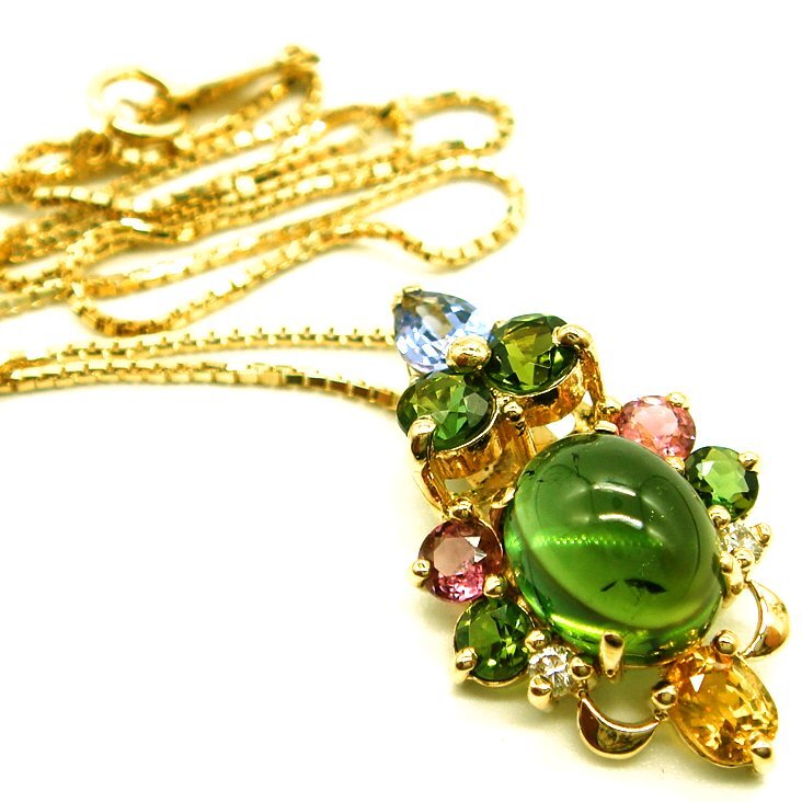 PN577:K18YG カラートルマリン ダイヤ ペンダントネックレス