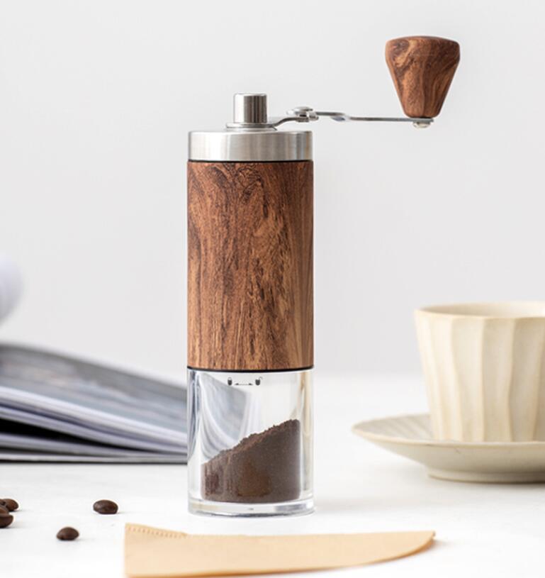 新入荷手挽きコーヒーミル コーヒーミル 豆挽き 木目調 ガラス調 アウトドア キャンプ 粗さ調節 コンパクト 丸洗い