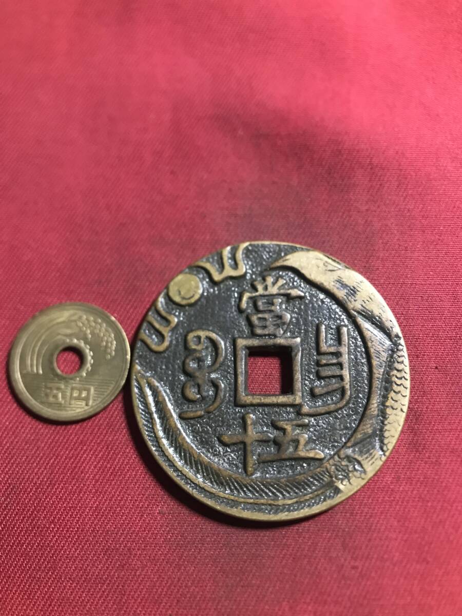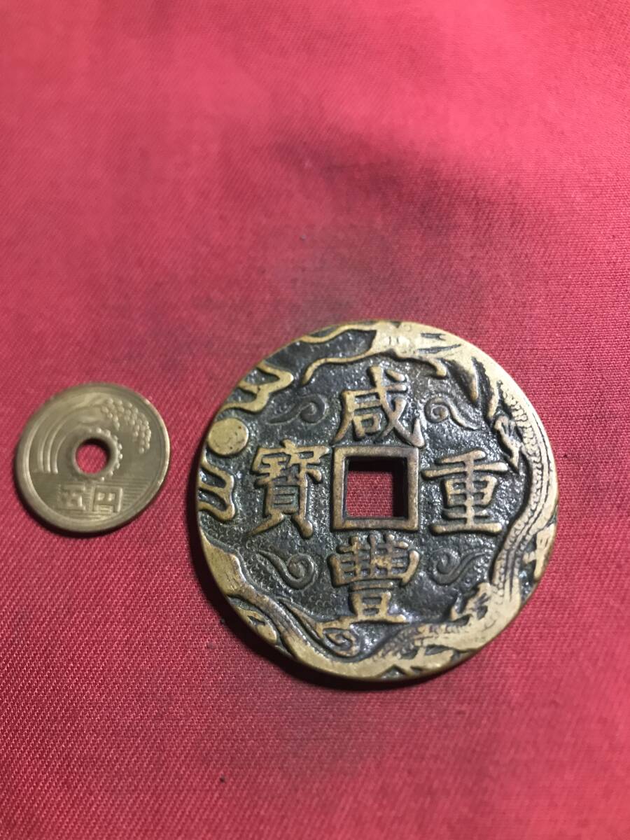 咸  豊 重 寶  背  当 五十 と 記号   大きくて 周り模様もあり