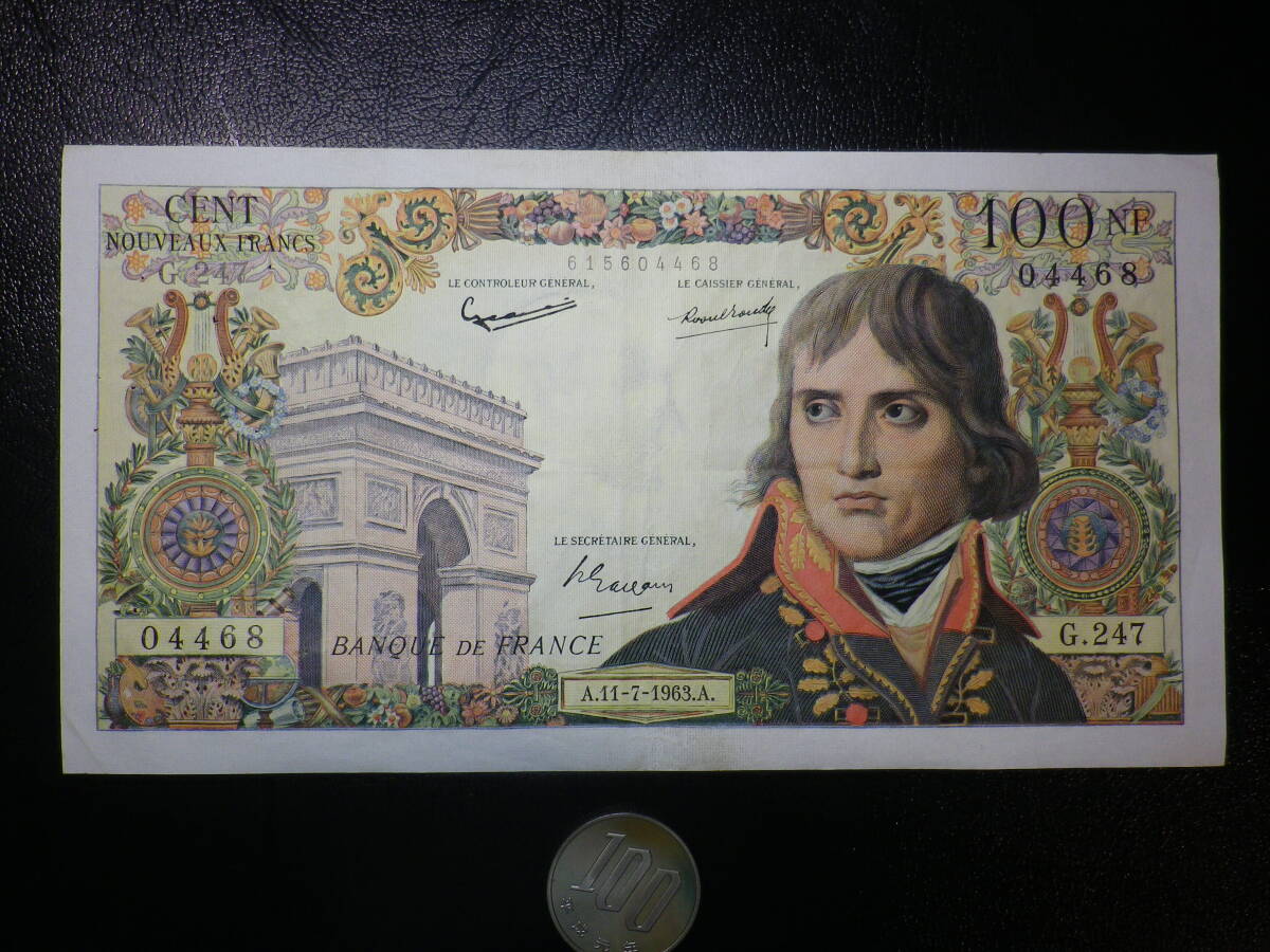 フランス 1963年 ボナパルト(ナポレオン)100新フラン 美品+ p-144a