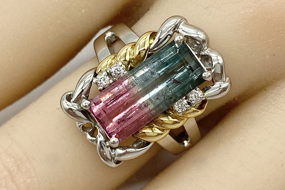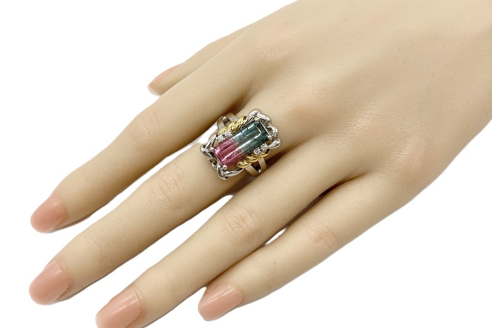 品名 | 【Bicolor Tourmaline】 Pt900/K18バイカラートルマリン ダイヤモンドリング |