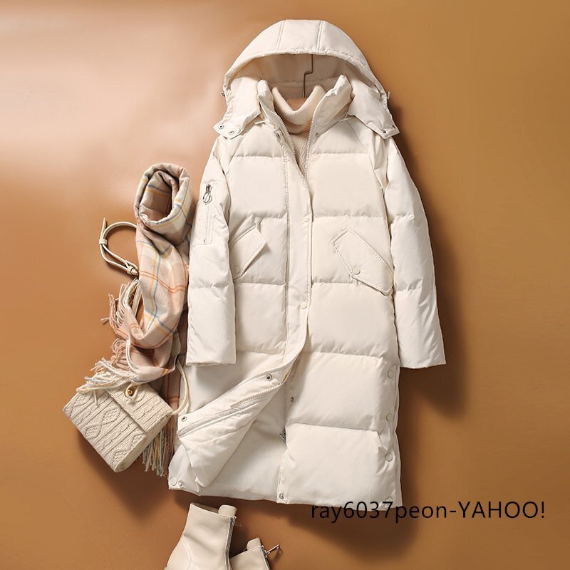 防寒 ダウンコート ダウンジャケット 暖かい 無地 コート アウター レディース ダウン86%~90% ロング丈 秋 冬 大人 S/M/L 白