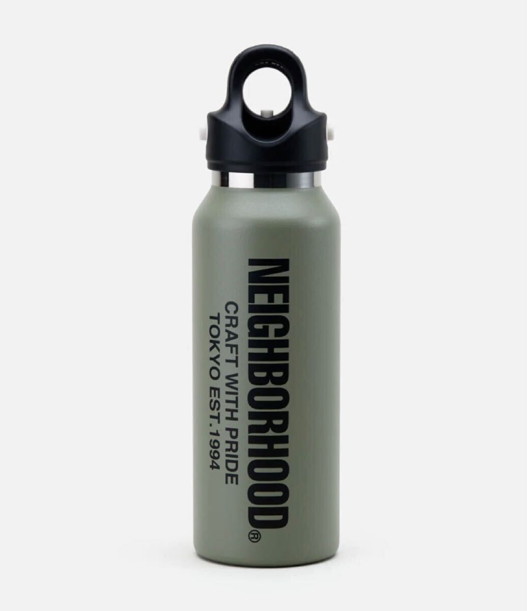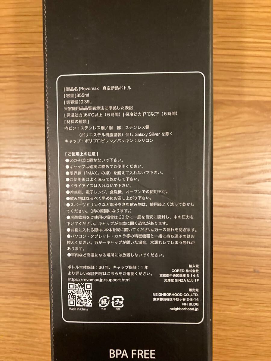 REVOMAX 12oz SLIM (355ml)を採用した別注の真空断熱ボトル。REVOMAX独自のワンタッチ開閉と、特殊な2重密閉構造で炭酸飲料にも対応するハイスペックな仕様。フロントにシルクプリント、背面にはレボマックスロゴをレーザーで刻み込んだ。キャップセットは3パーツ分解式で丸ごと洗浄可能な衛生的なつくり。日常使いに最適なコンパクトサイズ。