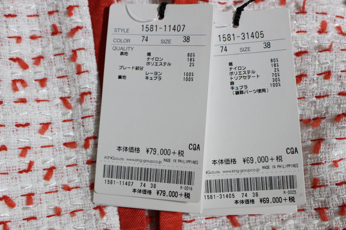 新品 タグ付き 定価16万2800円(税抜き ジャケット69000円+ワンピース79000円) フィリピン製