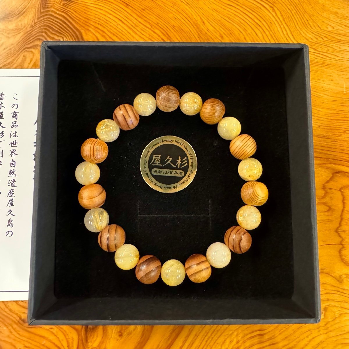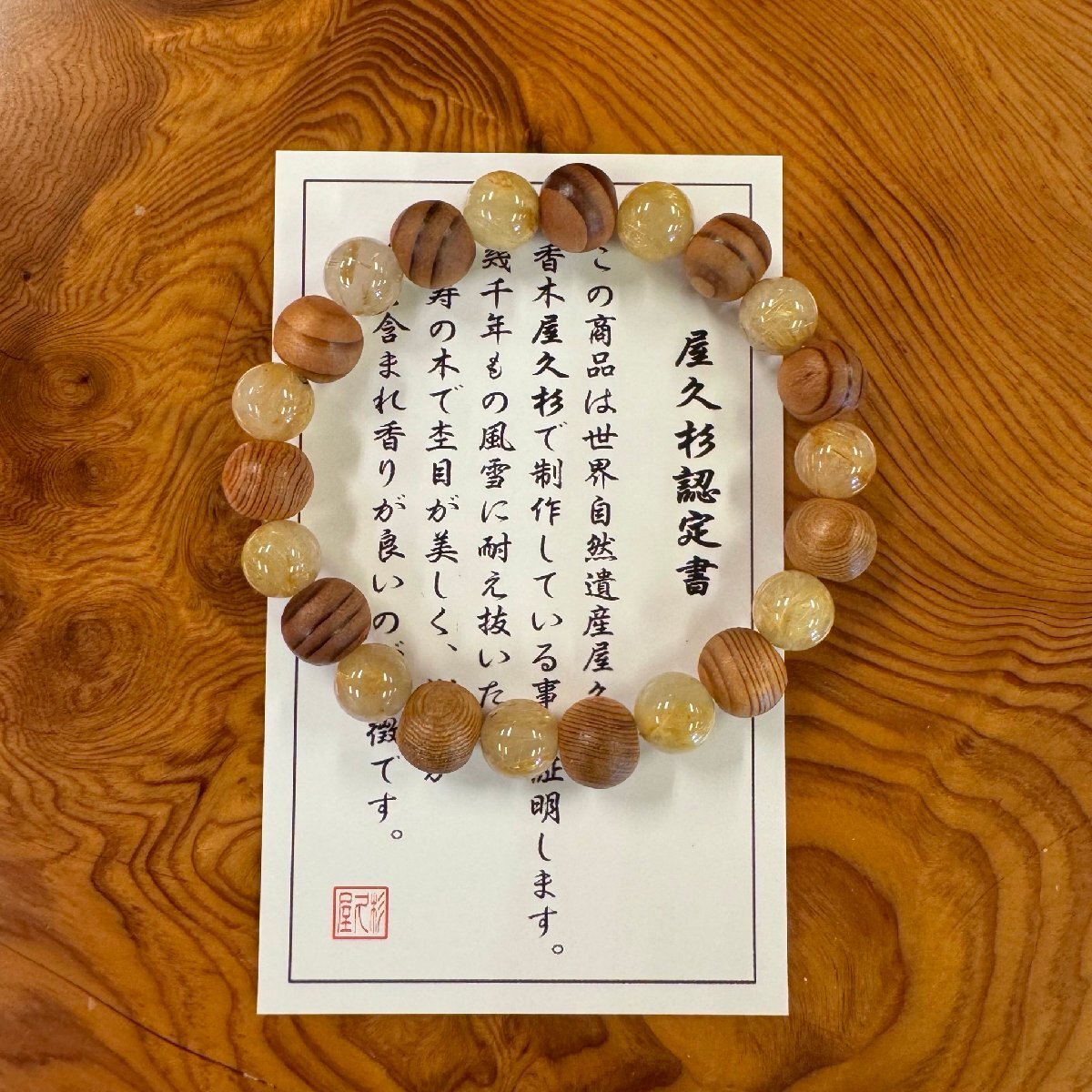 屋久杉ブレスレット8mm塗装11玉+ルチル7mm11玉 内周約15cm 送料無料女性用サイズです優しい色のルチル・屋久杉がよく合います黒箱 屋久杉認定書付ご入金確認後レターパックライトにて発送させて頂きます。
