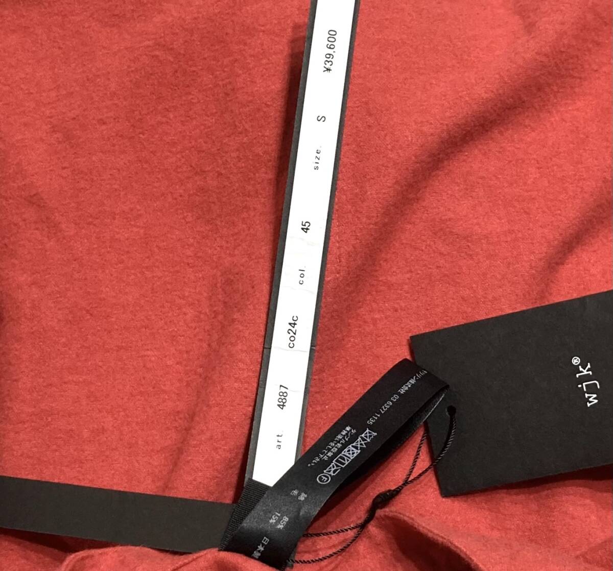 定価39600円。新品、サイズS、肩幅44cm、身幅50cm、着丈68cm、袖丈(肩から)60cm。