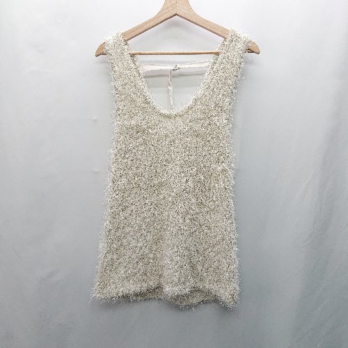 ◇ ⊂ w closet ダブルクローゼット ラメ ノースリーブ タンクトップ サイズF ベージュ レディース E