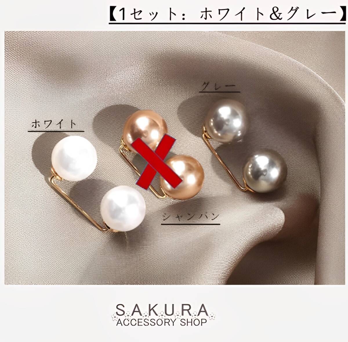 【セット:ホワイト&グレー】パール 万能ピンブローチ