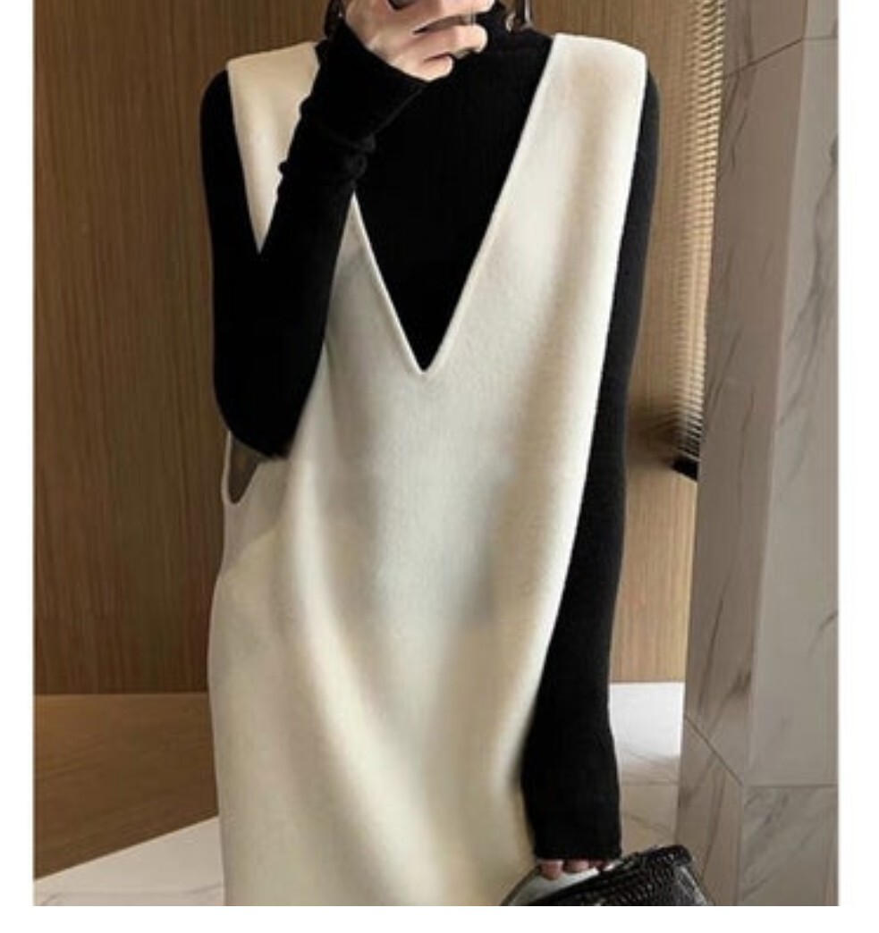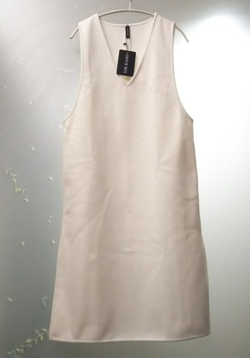 匿/宅急便【未使用・タグ付き】冬生地 ホワイト系 Vネックワンピース