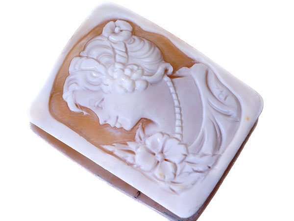 上品な貴婦人と花を繊細に彫刻で演出した、素晴らしい高級シェルカメオルースです!