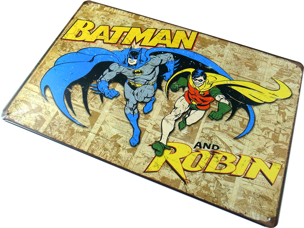 クリアランスSALE!! 通常価格1280円→1000円 BATMAN 【バットマン】とRobin のブリキ看板です。 縦30cm×横20cm (約A4サイズの大きさです) バーやカフェなどおしゃれなインテリアに最適。 四隅に穴が空いておりますので、取り付けも簡単に出来ます。 また、ブルタックを使用すれば壁にキズを付けずに装飾が可能です。 ※商品の特性上、若干のゆがみがある場合がございます。ご了承の上ご注文下さい。 商品サイズ:横20cm×縦30cm (約A4サイズの大きさです) 素材:ブリキ 【特典】 ★ネコポス送料無料★ 宅急便と同じ早さでお手元に届きます。 ポストに直接投函されるのでお受け取りの時間をあける必要はございません。 ーーーーーーーーーーーーーーー DC コミック アメコミ スーパーヒーロー |