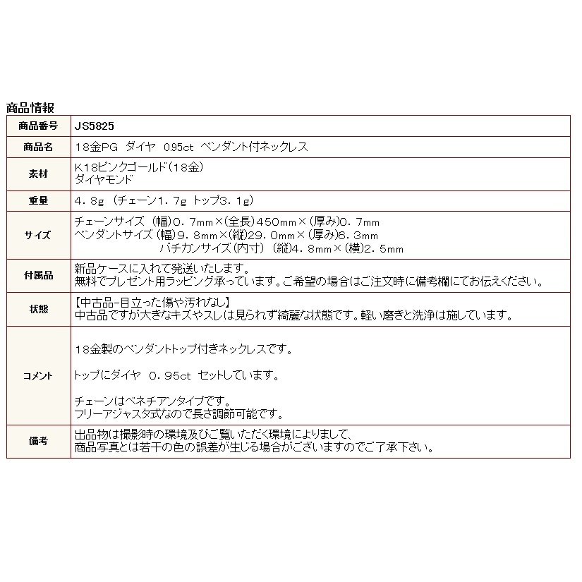 商品名 | 18金PG ダイヤ 0.95ct ペンダント付ネックレス |