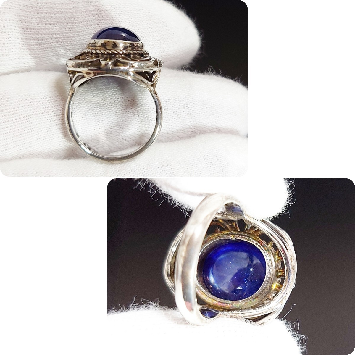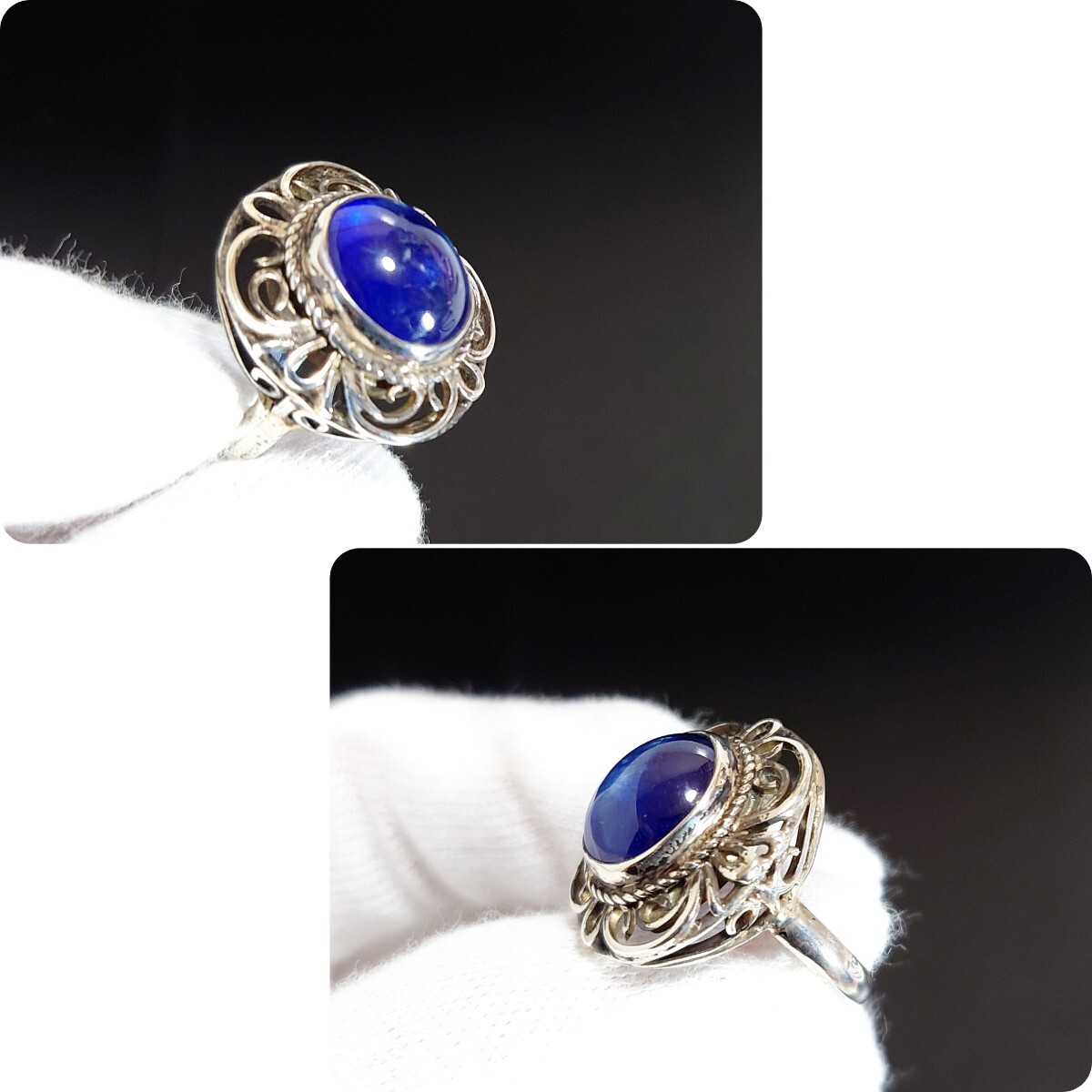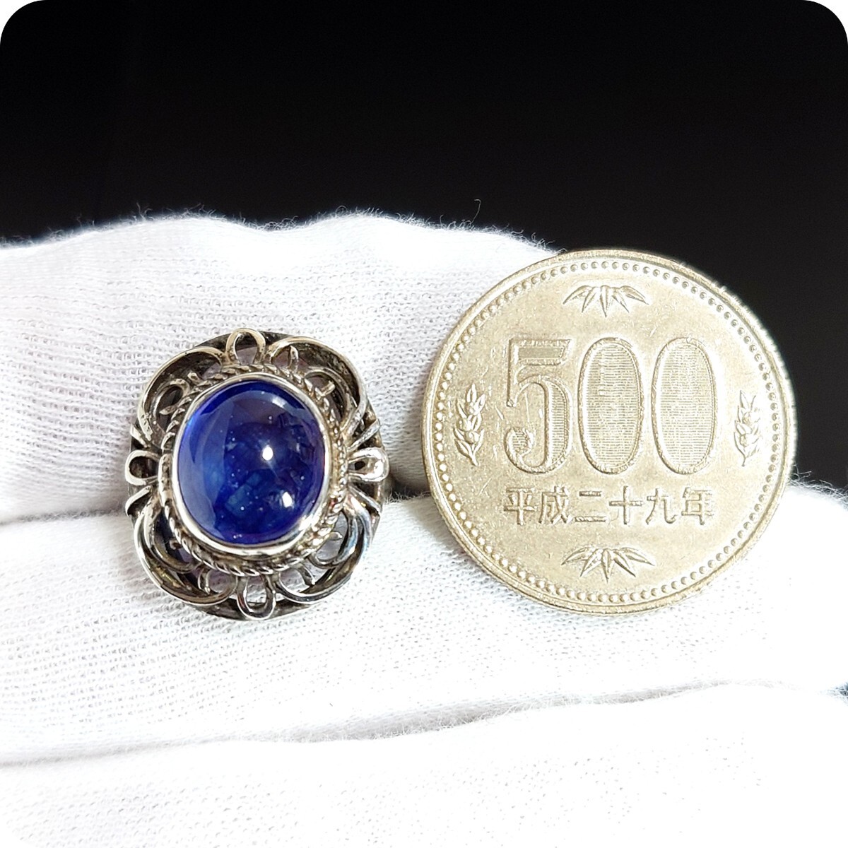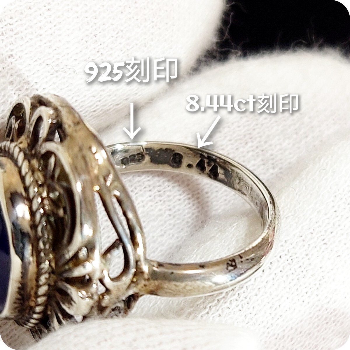 ブルーサファイアとアラベスクの彫刻がとても綺麗なリング☆