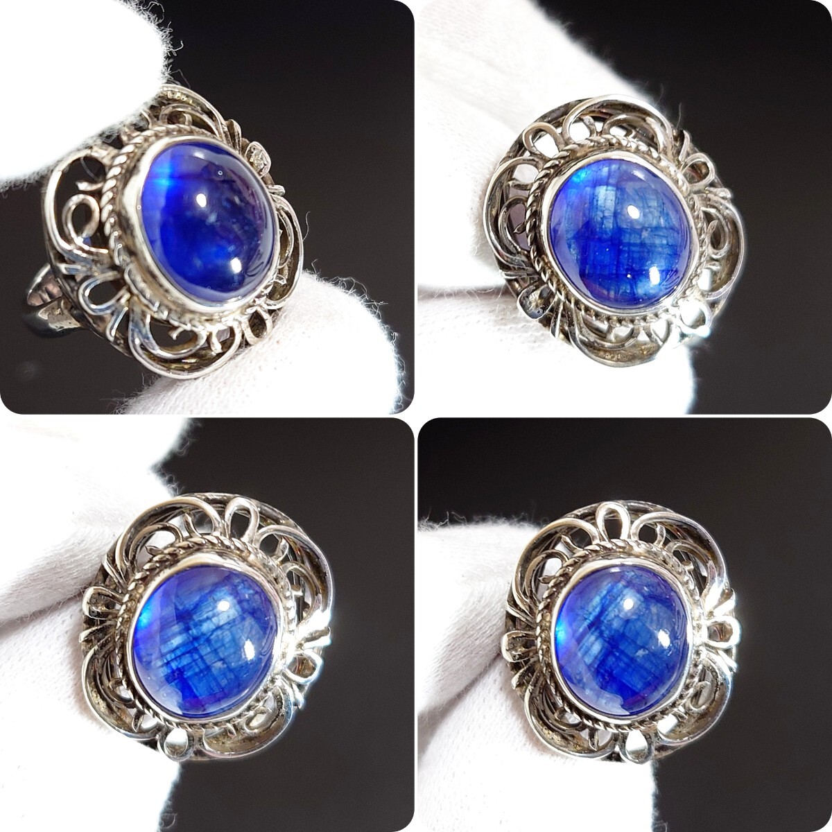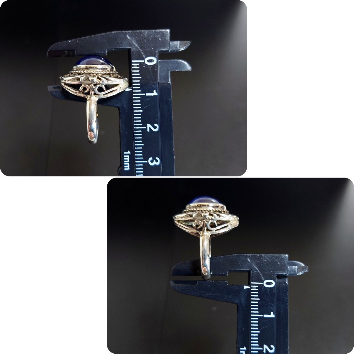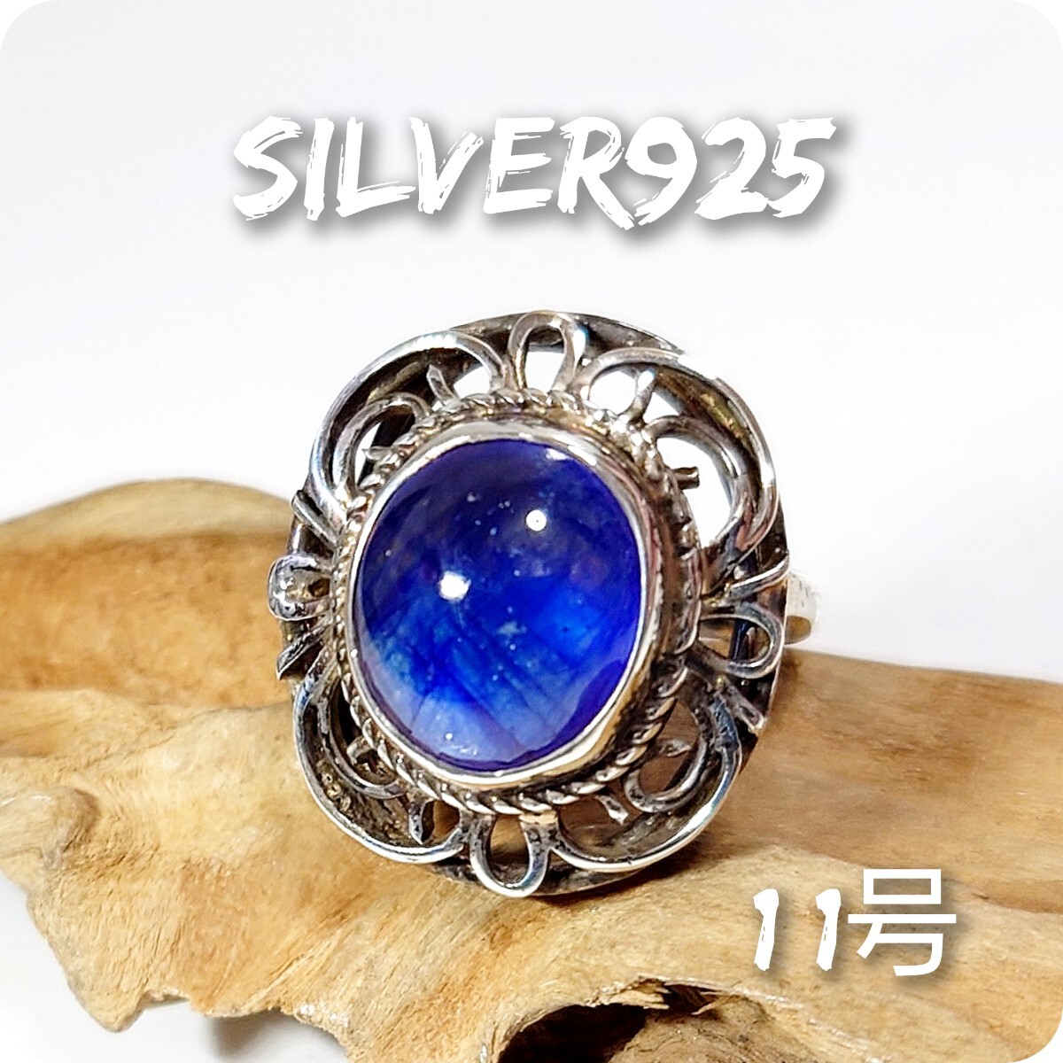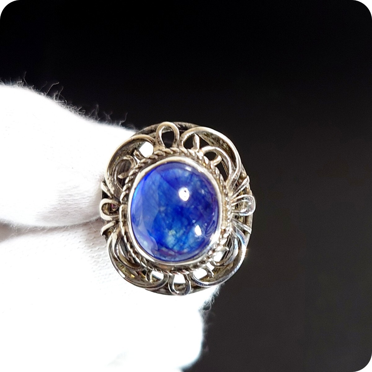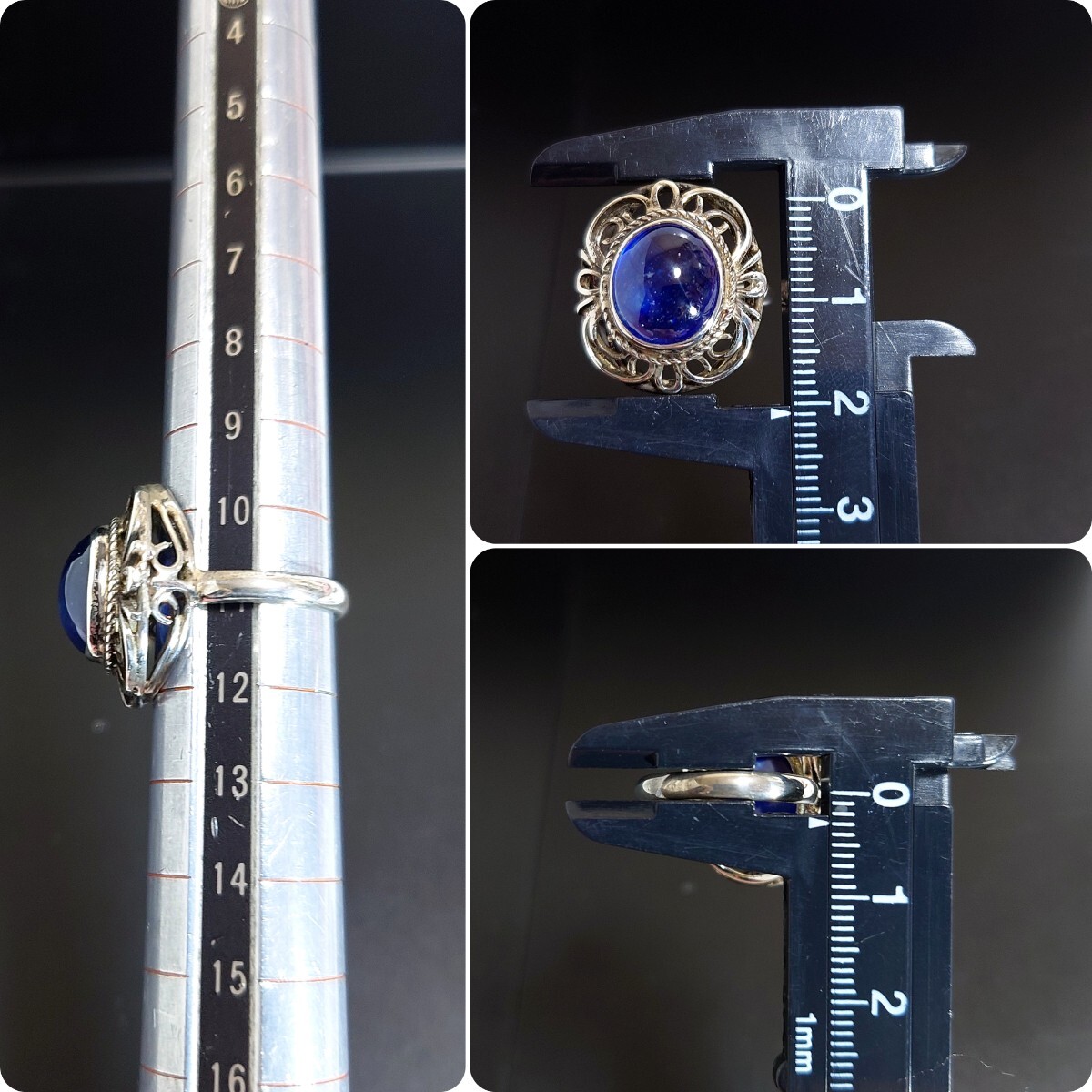 ブルーサファイアとアラベスクの彫刻がとても綺麗なリング☆