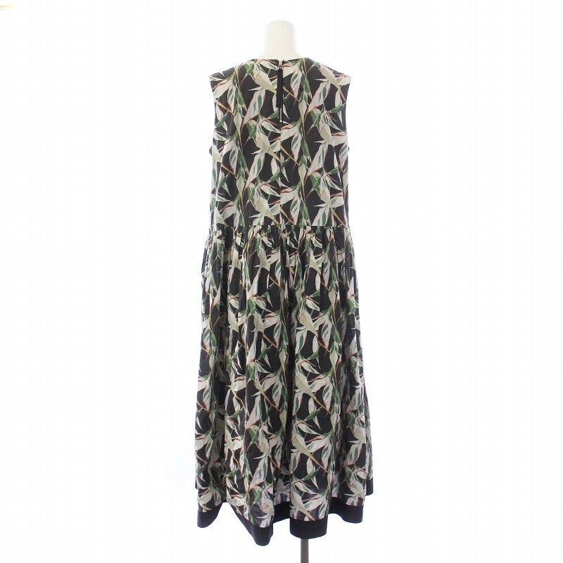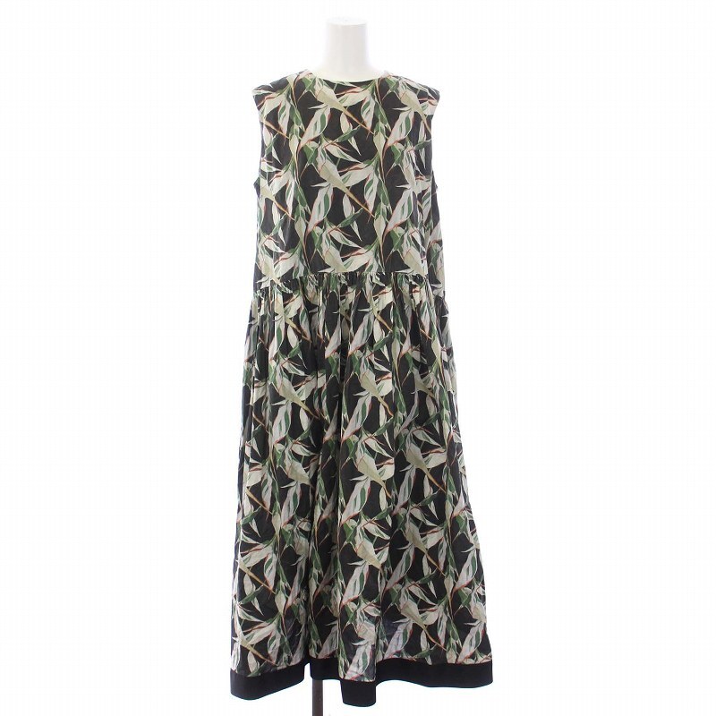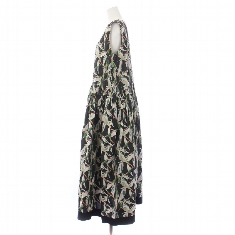 ビアズリー BEARDSLEY 22AW ノースリーブワンピース ロング マキシ プリント ギャザー F 黒 ブラック /KH レディース