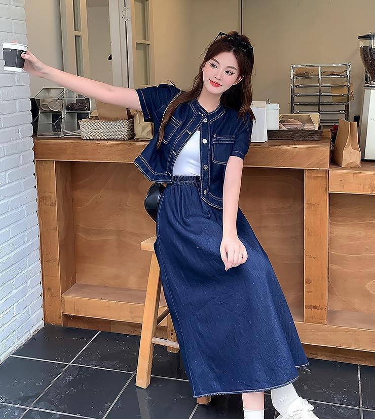 大きいサイズ レディース セットアップ スカート デニム トップス 春夏 秋 新品 半袖