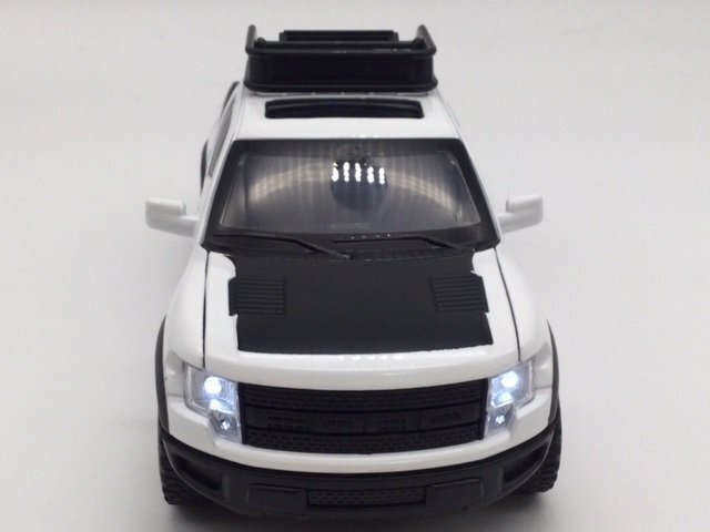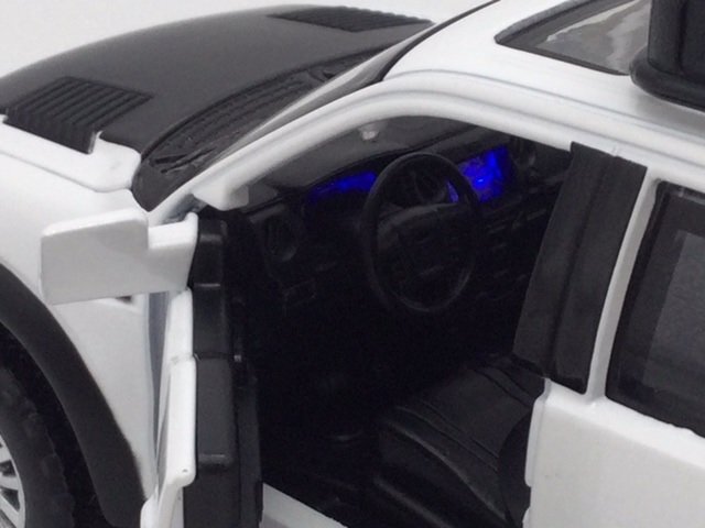 ダブルホース社製 プルバック機能付きの光る!鳴る!ミニカー スケールは1/32です ボタン電池のLR-44を3個(新品)お付けいたしますので、 ご自身で電池のセットをお願いいたします。 電池の組み込み、交換には小さめのプラスドライバーが必要です。 SVTスペシャル・ヴィークル・チームによって開発されたフォードレプター! 2010年に登場したオフロード向けのピックアップトラック ルーフから荷台にかけてスペアタイヤと台が付いたスペシャルデザイン! ボンネットにもF150のロゴが入っています。 素材はダイキャストメタル&プラスチックパーツ。 お子様の玩具に最適な音と光付き!! ドアを開けるとクラクションの音と、バック音、 キーロックの音、そしてヘッドライトが点灯します。 そしてボンネットを上から押しタイヤを押しこむとエンジン音と 走行音とブレーキ音、そしてライトも点灯します。 ボンネットも開閉可能な、遊び心満載なひと品となっております!! 車体サイズ:全長17.5×高さ7×幅6.5cm インテリアにしても十分な魅力を持ったミニカーです! ※こちらの商品は箱入りではございませんのでご注意くださいませ。 *輸入時からの微かな汚れ、傷がある場合がありますのでご了承下さい。 |