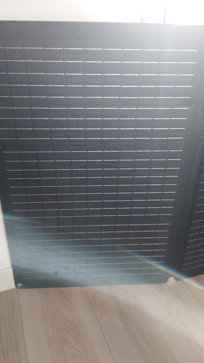 動作確認済 東京の冬、11:30頃、晴、パネル下部に手摺の影アリで21.3v 3.3A出力確認、AUKEYのポータブル電源に54W(定格60W)で充電確認。