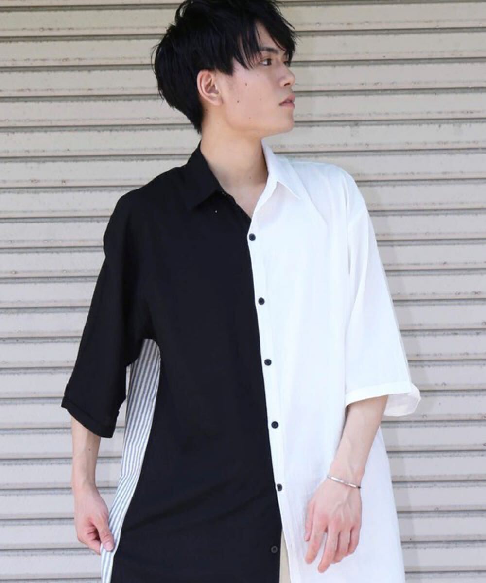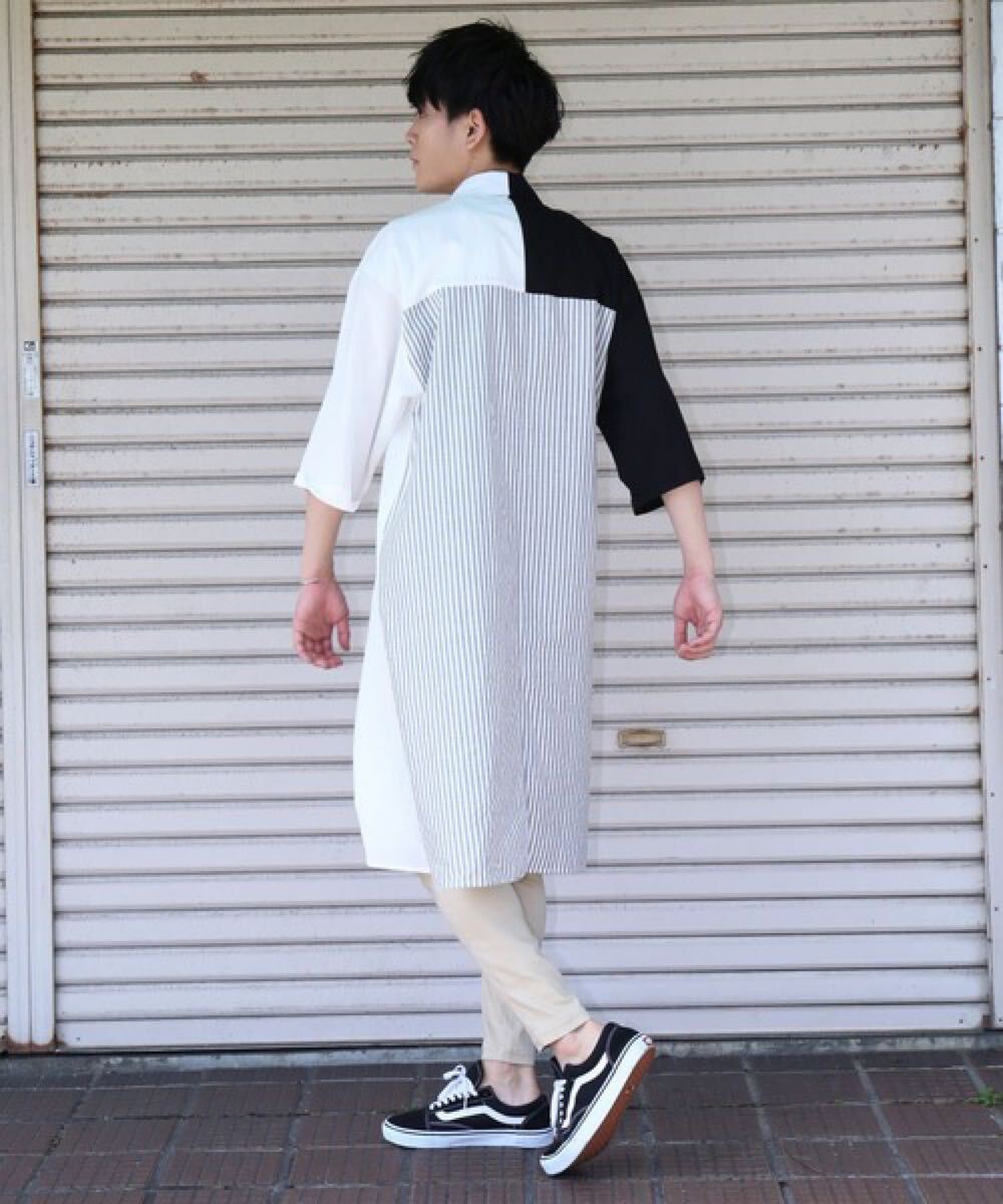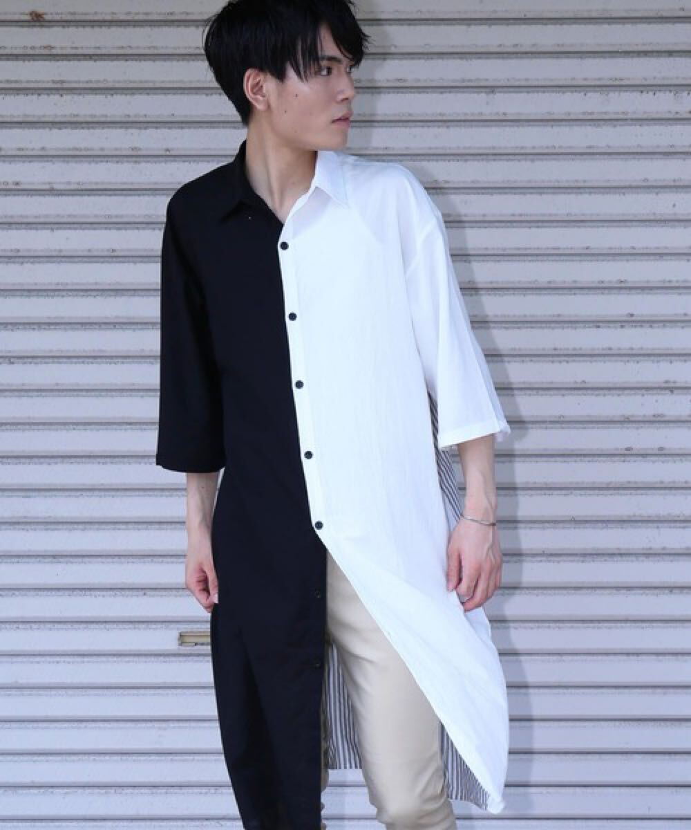 revertical リバーティカル men's メンズ トップス バックストライプロングシャツ ロング丈バイカラーブラウス