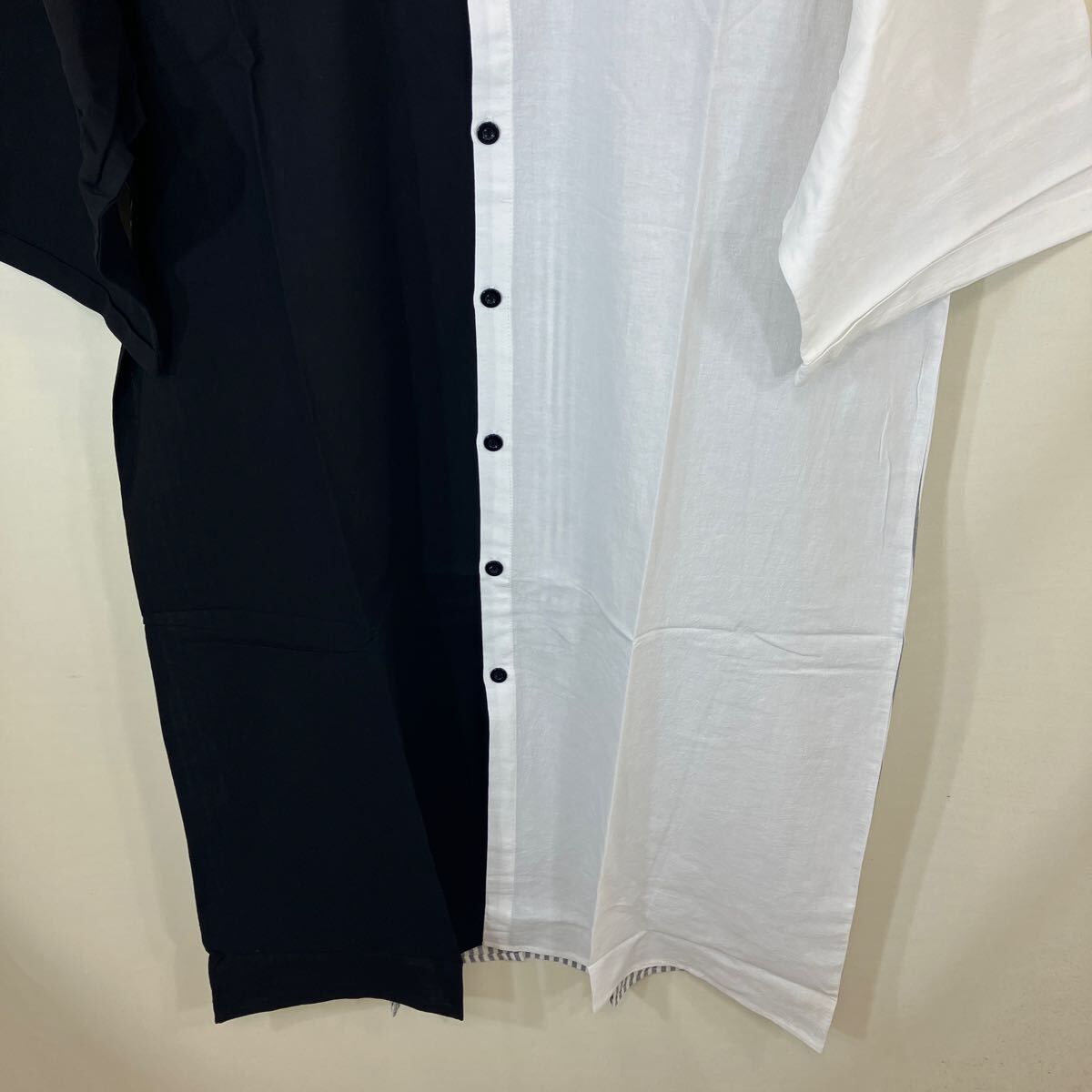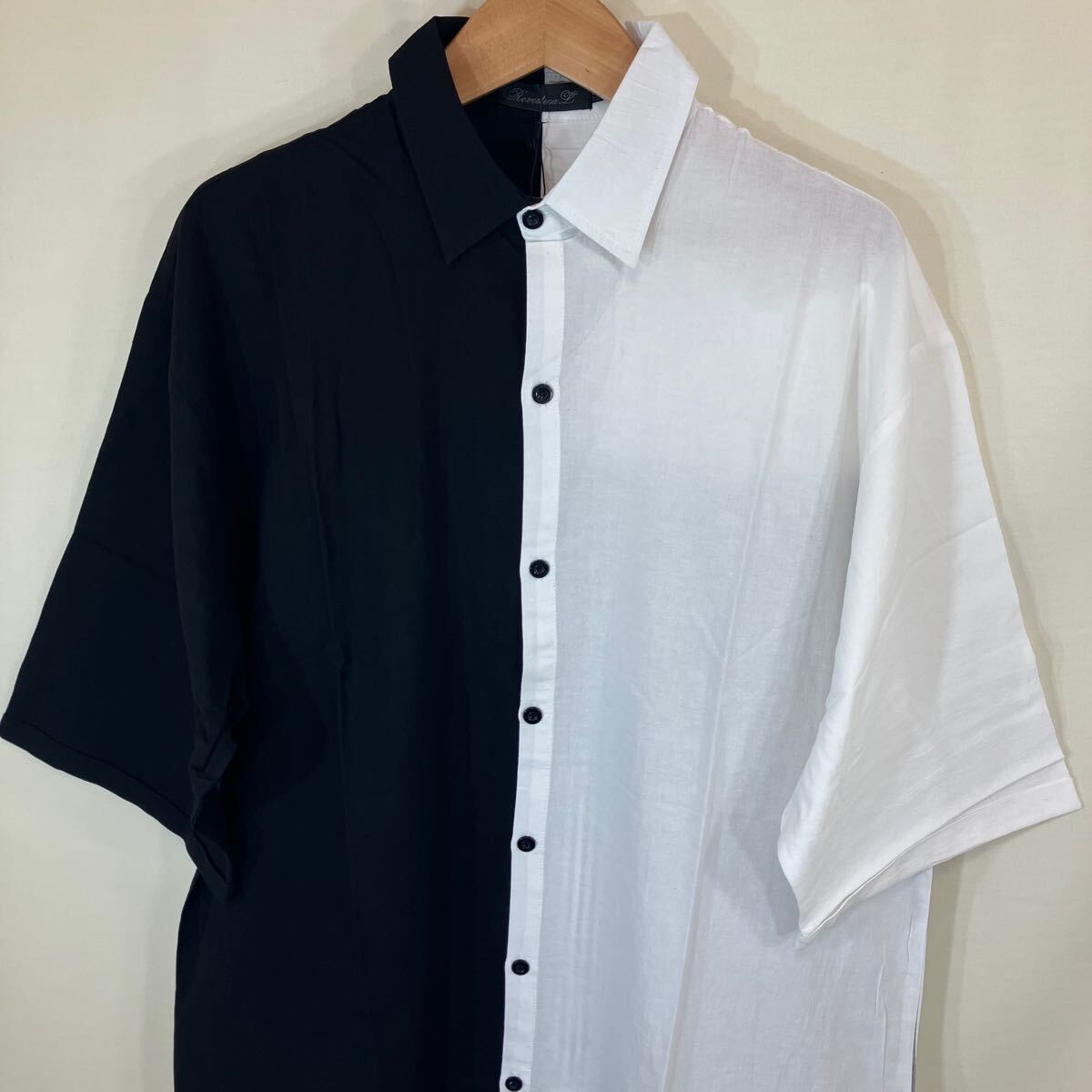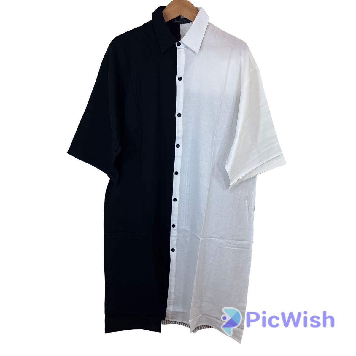 ★ビッグシルエットにトレンド感のあるバイカラーデザイン人気のオーバーサイズ&ドロップショルダーシルエットに、バイカラー&バックストライプデザイン。前の2枚がそれぞれ違うカラーのバイカラーデザインと、後身頃で切り替えのあるデザインでスタイリッシュ♪★ロング丈でふわっと風になびくロングカーデにも前のボタンを開けて着れば夏~秋のシャツコートに。秋には長袖トップスをインしてレイヤードスタイルにも!ラフにさらっと羽織れる1枚です。★天然コットン100%素材汗や水に強く清涼感のある軽やかな素材。夏は汗を吸収し速乾性もあるから真夏の暑い時期にもぴったり!