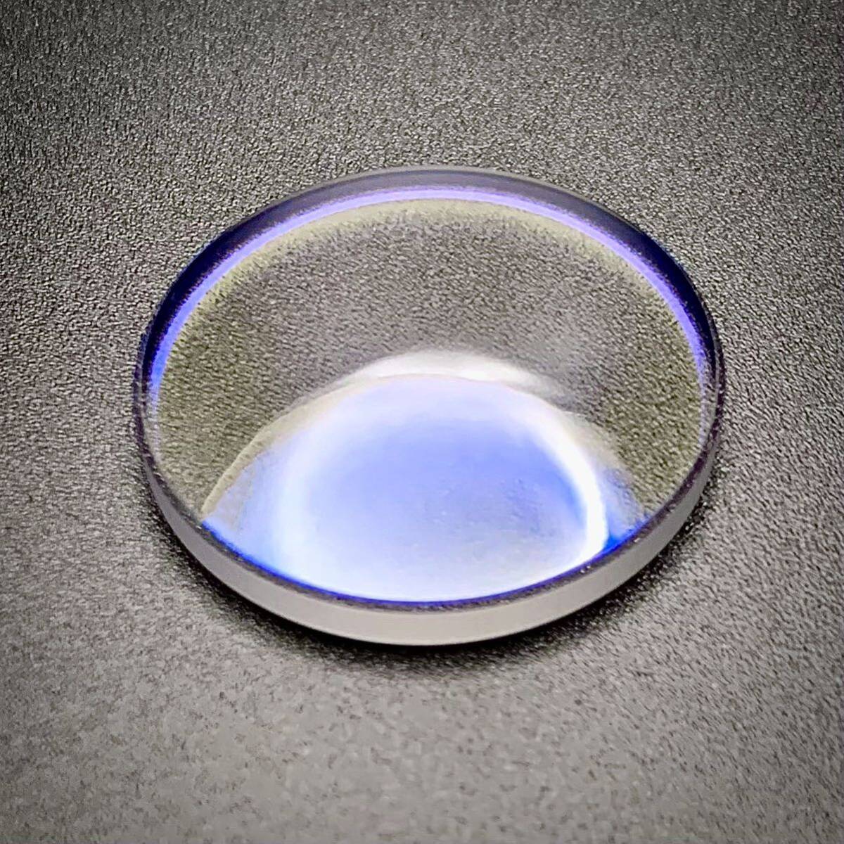 モース硬度9のサファイアクリスタルですので傷にとても強い素材です。ブルーのARコーティングですので光が当たった時の色の変化を楽しめます。