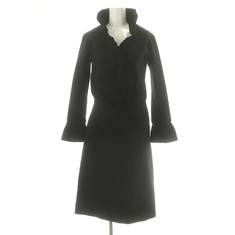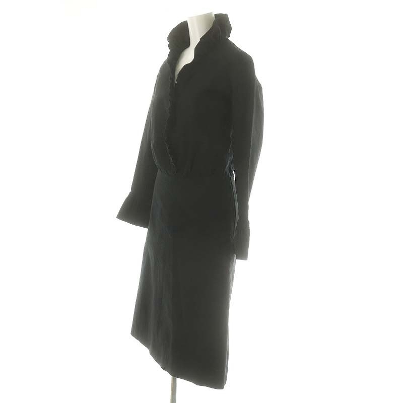 エポカザショップ EPOCA THE SHOP ベルスリーブ フリルカラーシャツワンピース 長袖 ロング コットン 黒 ブラック /NR ■OS レディース