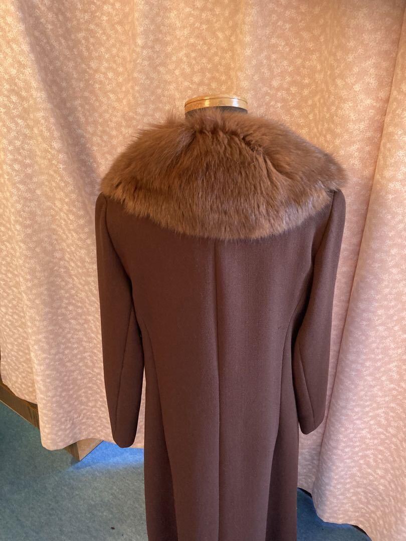 毛皮のファーが美しいラピーヌのブラウンのロングコートです。