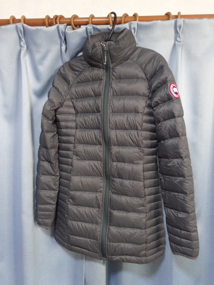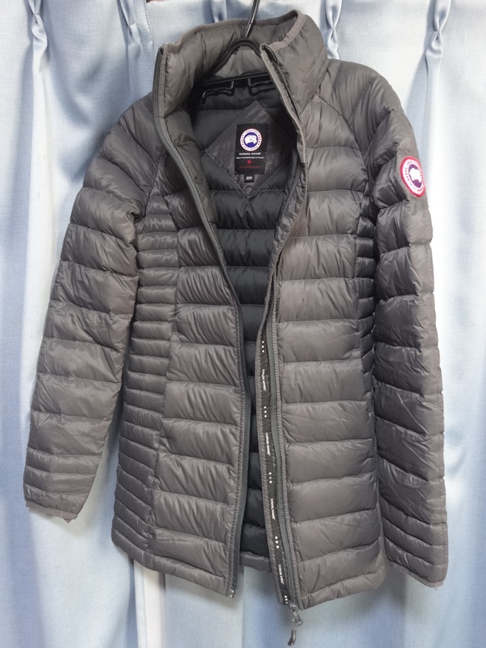 カナダグースのBROOKVALE(ブルックベール)と呼ばれるライトダウンです。品番は5502Lで、色味は黒というよりも濃いグレーに近いです。ニセモノが多いうえに重くてかさばる厚手ダウンよりも日常的に気軽に着用できるのでお薦めです。即完売品のため、あまり市場では見かけない希少品です。こちらは以前に真贋鑑定済み品として購入したものです。高価な物なので女房が街に外出する際に少し着用したぐらいで、こちらでのトータル着用回数は数えるほどです。定価は12万円ほどです。