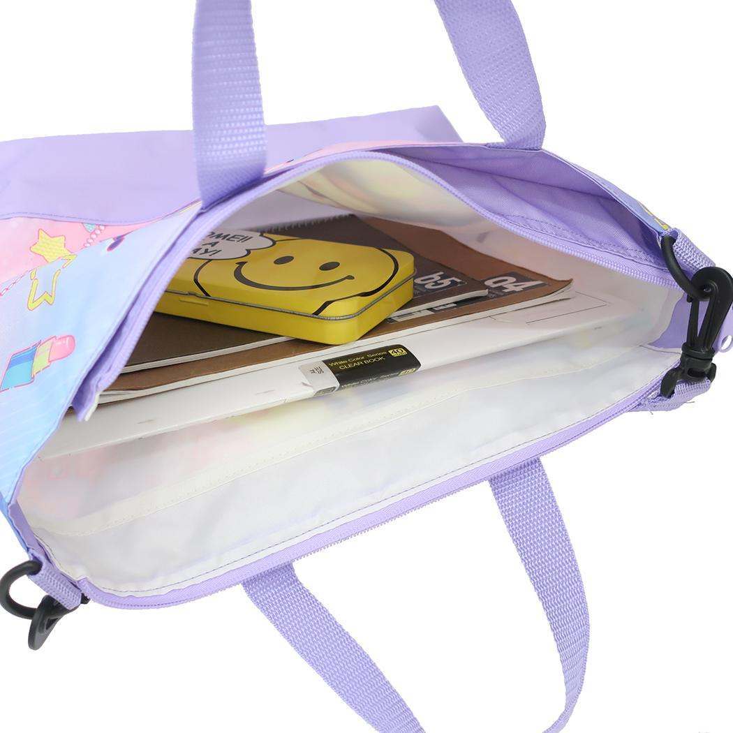 水をはじく撥水加工で汚れを防ぐ! 大人気サンリオキャラクターのキュートなスクール雑貨シリーズこちらは斜め掛けと手提げ持ちができる[2wayトートバッグ]菌の繁殖を抑制する抗菌生地仕様です水をはじく撥水加工で汚れや水に強い天ファスナー付きで中身が隠せて雨の日のお出かけでも大丈夫内側に名前などを書けるネームタグがついていますかわいいキャラバッグいろいろあるのでお気に入りを探してくださいサイズ:約420x310x75mm素材:ポリエステル