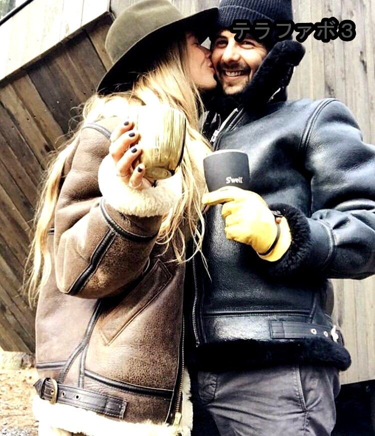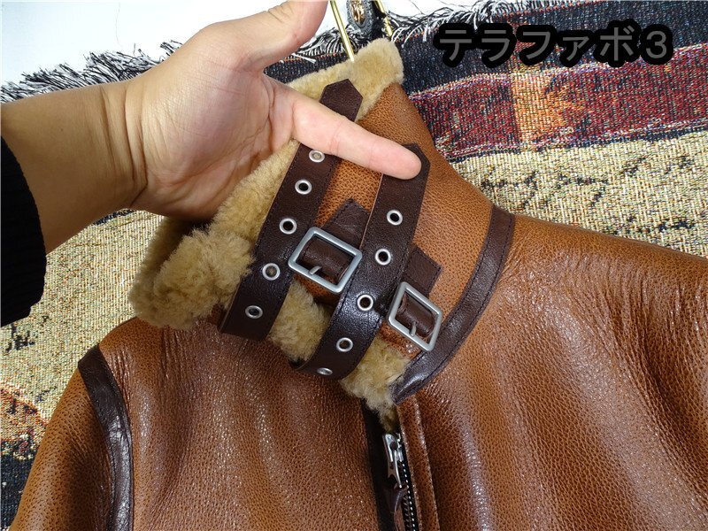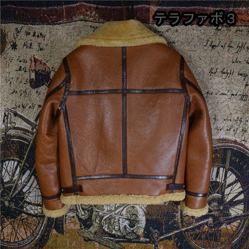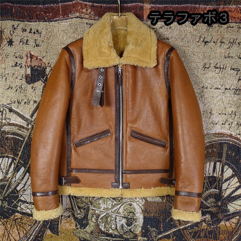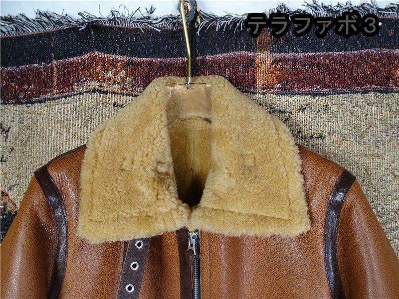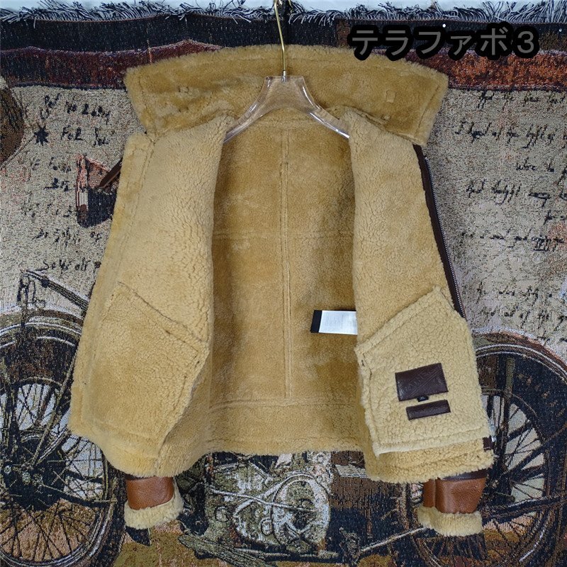 暖かい 厚手 本革ジャケット メンズ ムートン ウール 革ジャン 本革コート S~4XL ブラウン