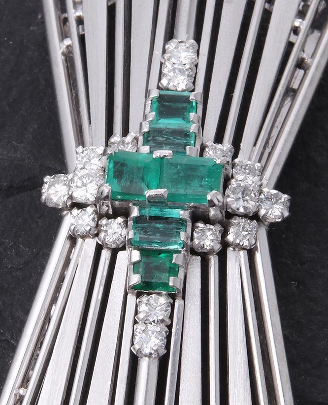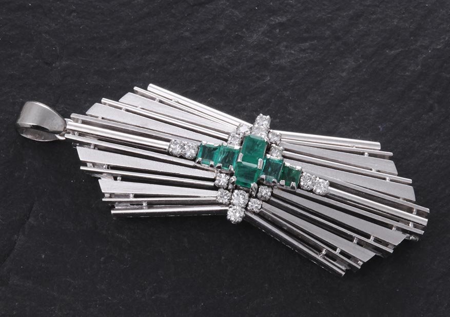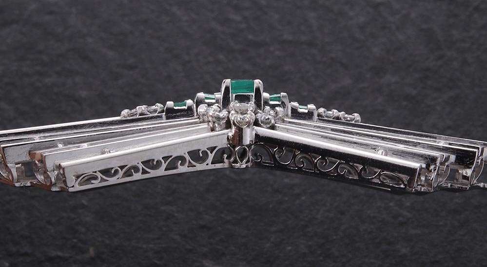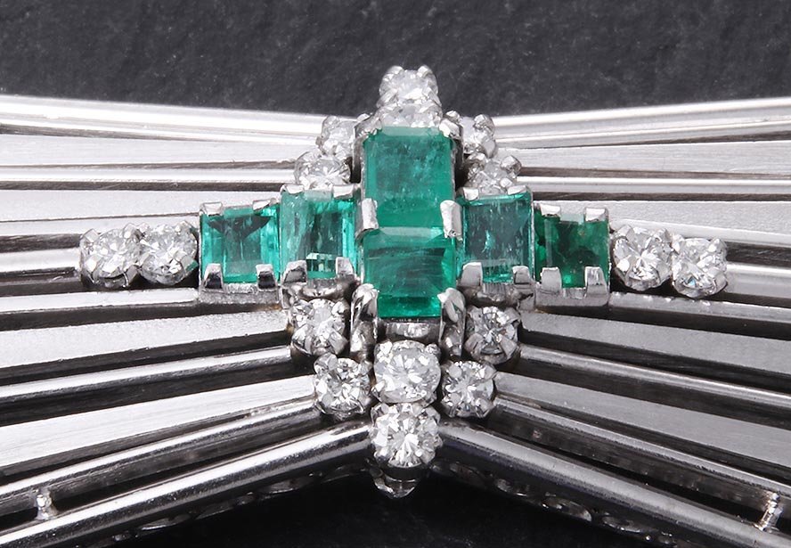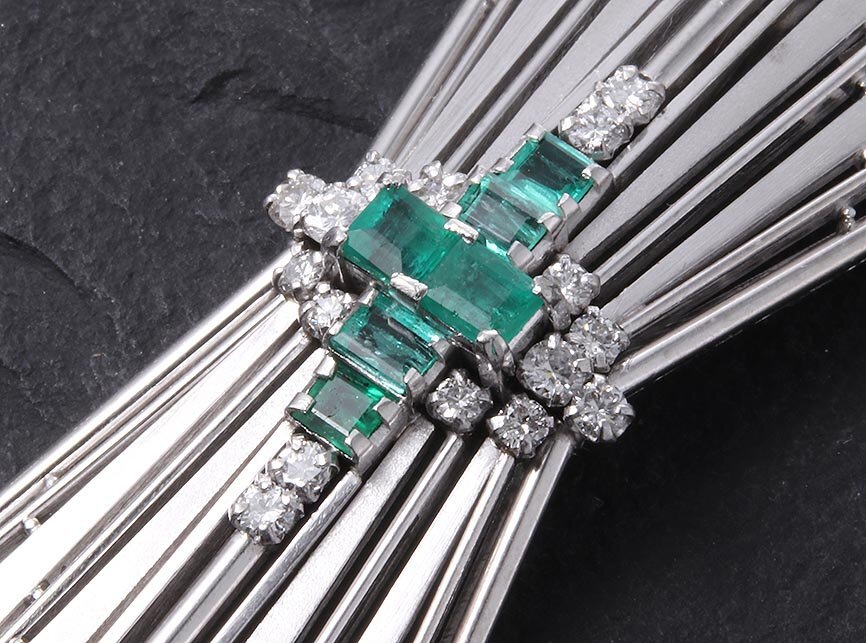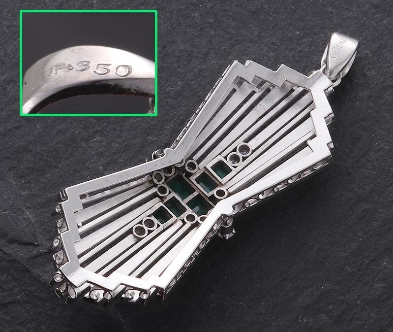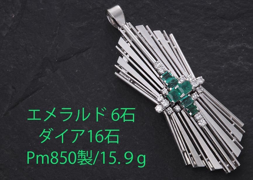 | マテリアル | 天然エメラルド、天然ダイア、いずれのカラット刻印もなし、プラチナ850製(Pm850) |