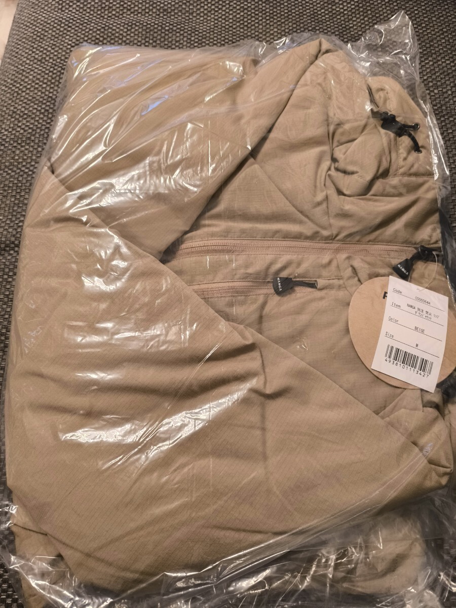 NANGAのフラッグシップモデルAURORA DOWN JACKETのフォルムに、難燃素材「焚火リップ」を融合した別注モデル。