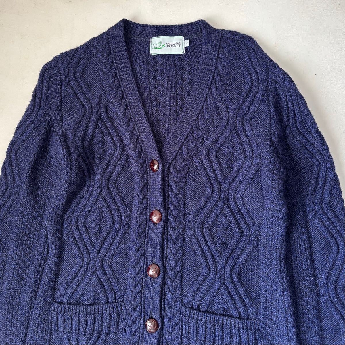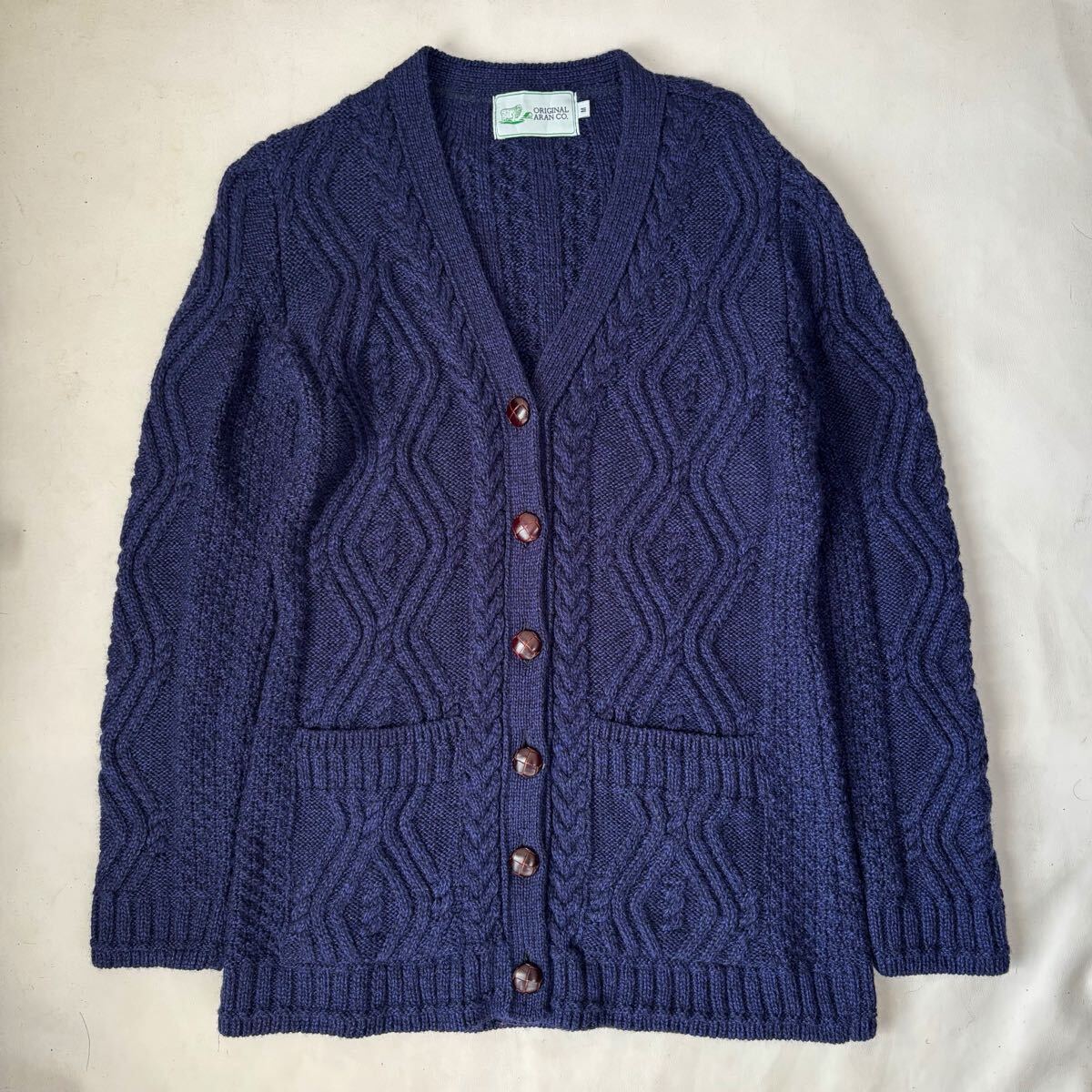 ORIGINAL ARAN CO メリノウール アラン ニット カーディガン M アイルランド フィッシャーマン ケーブル編み