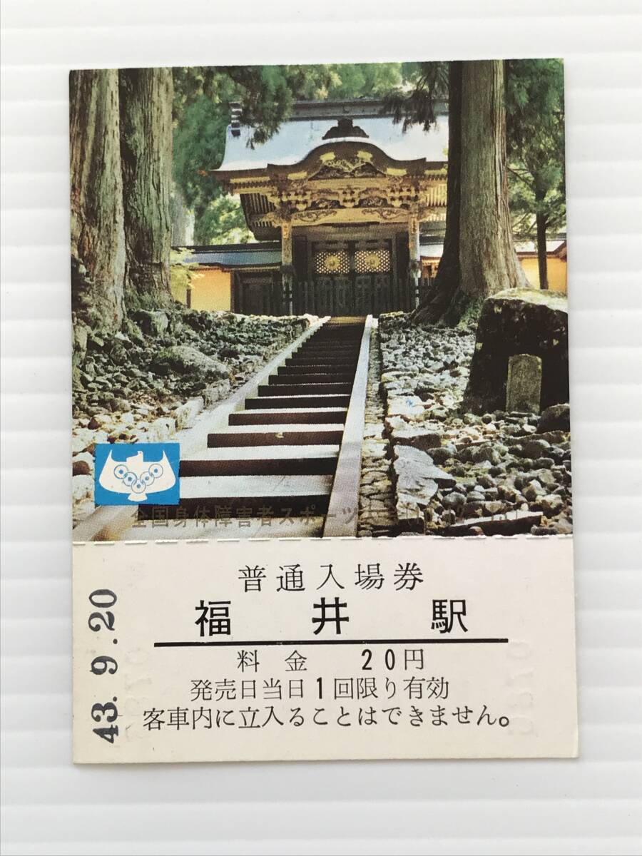 昔の切符 記念切符 全国身体障害者スポーツ大会 普通入場券 福井駅 昭和43年 福井駅発行  HF6700   くるり岸田繁