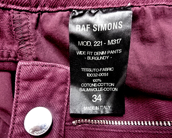 34 未使用 ¥86,130【RAFSIMONS Wide fit denim pants 221-M317-10032-0051 BURGUNDY ラフシモンズ ワイド フィット デニムパンツ SS2022】