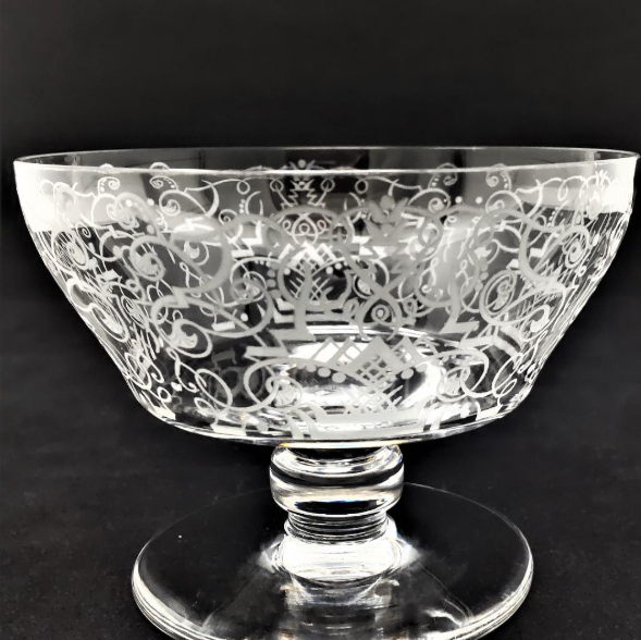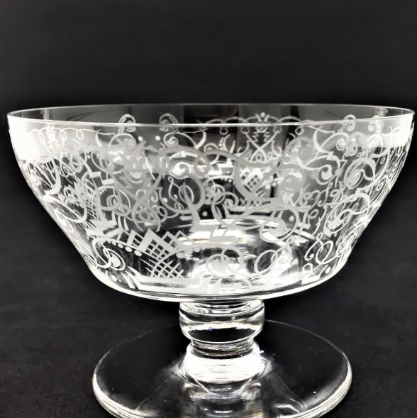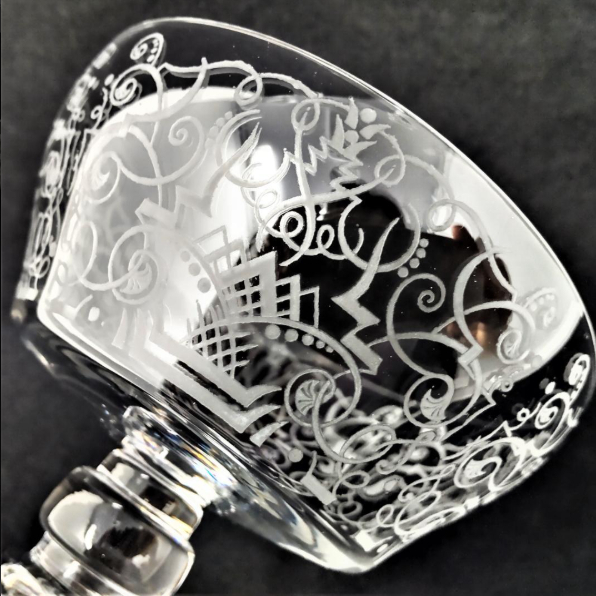 アールデコ調の古典的な唐草文様が繊細なエッチングで描かれており、