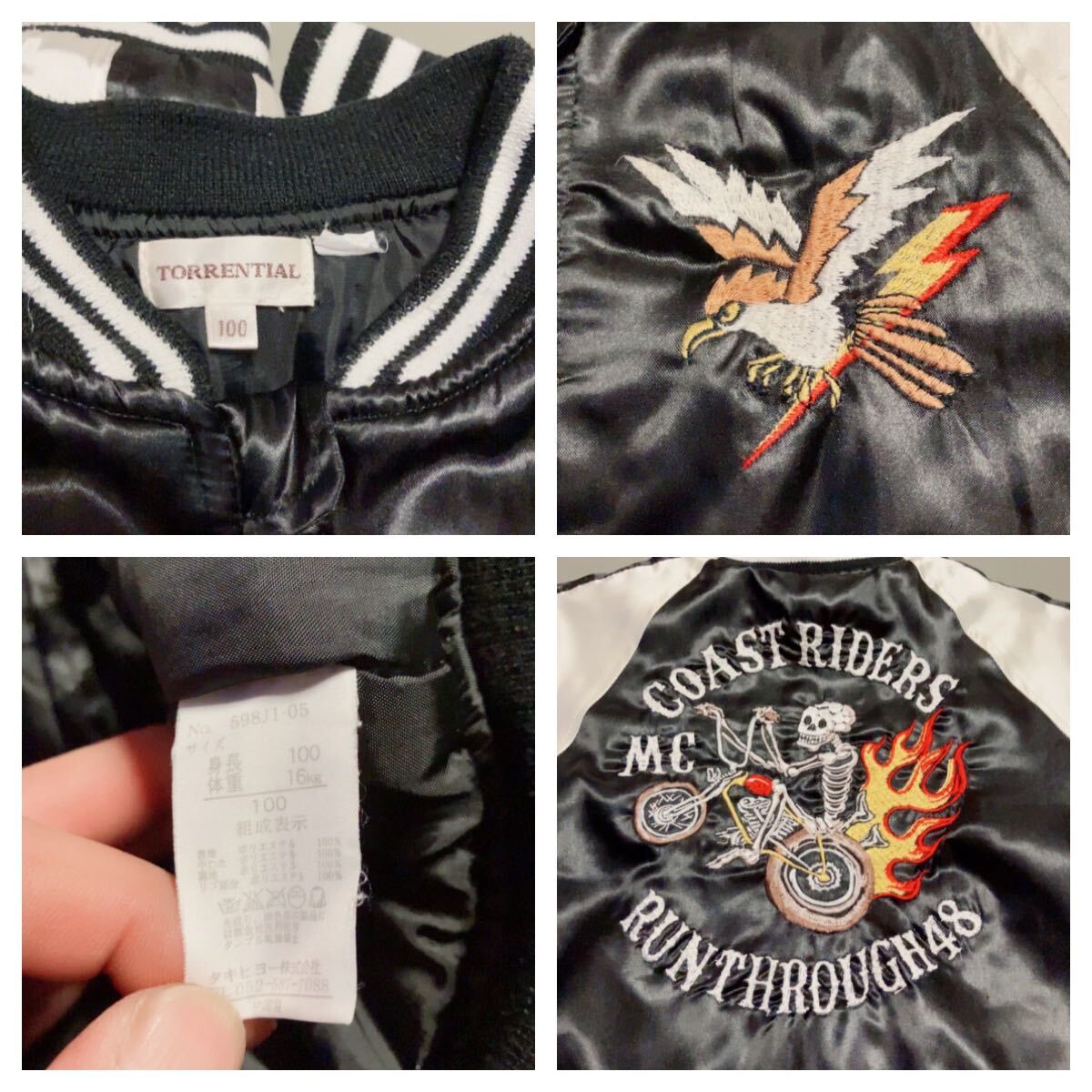 ☆【TORRENTIAR】ゴーストライダー MC RUNTHROUGH 48 刺繍 スカジャン スーベニアジャケット サイズ100 黒 銀