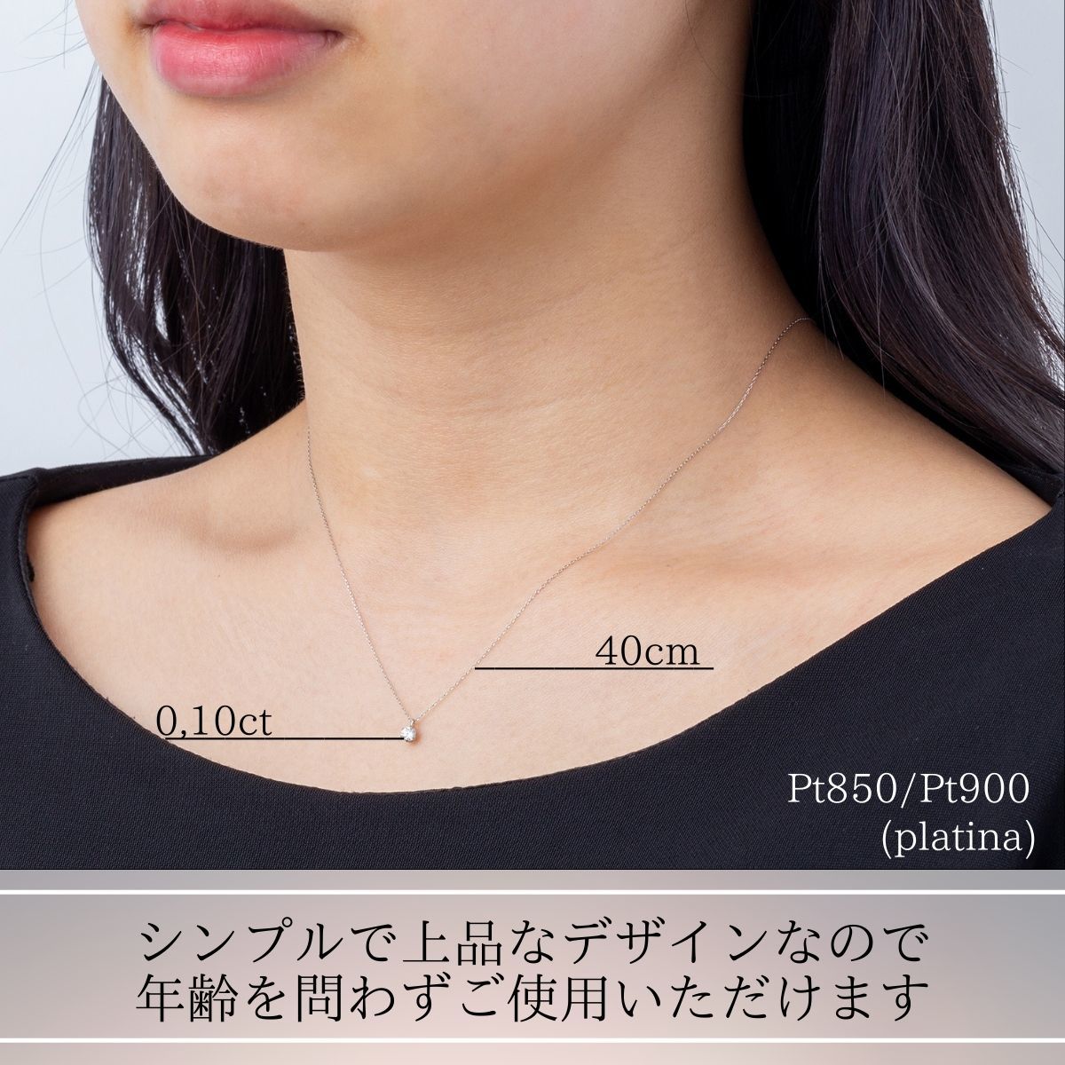 ダイヤモンドの周りをプラチナが囲んでいるので、プラチナのチェーンネックレスとも相性が良いです。