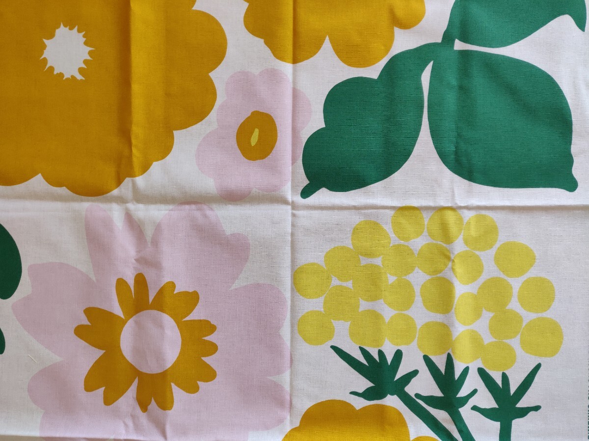 マリメッコのファブリックです。ファブリックパネルやバッグなどの小物作りにいかがでしょうか。