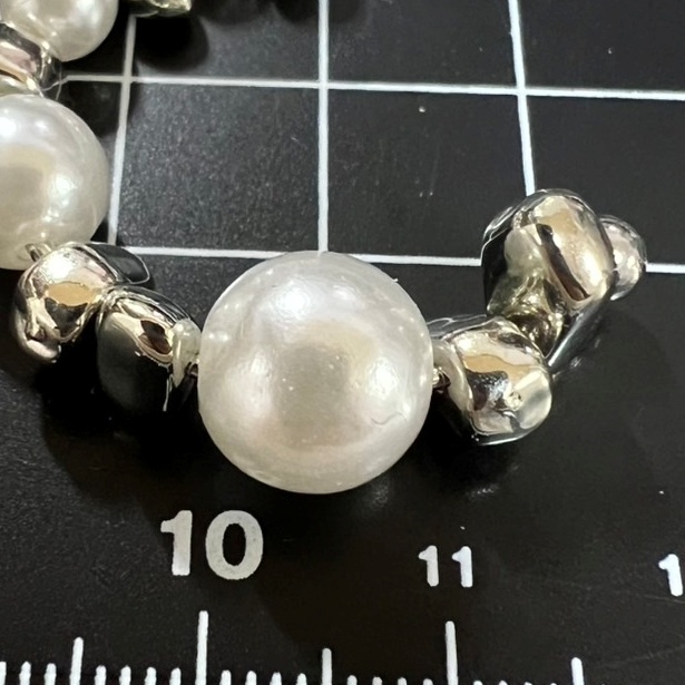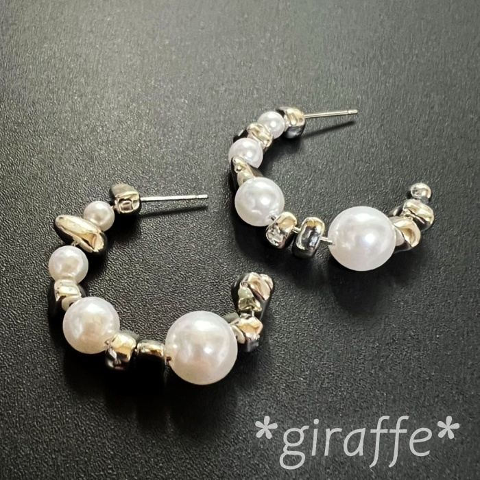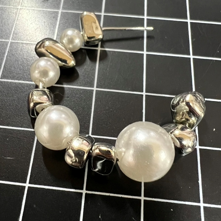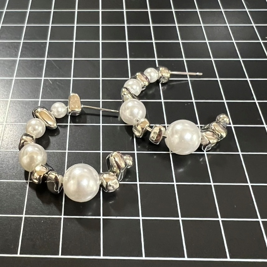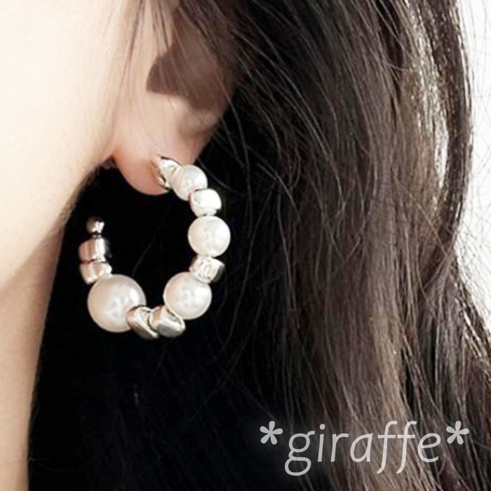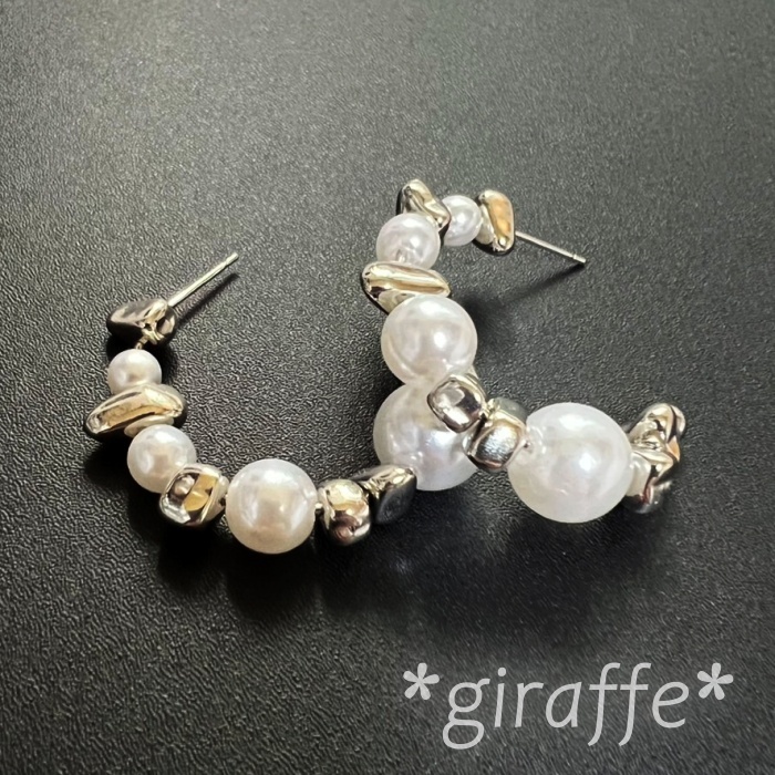 不規則なシルバービーズとパールの組み合わせがおしゃれなピアス。