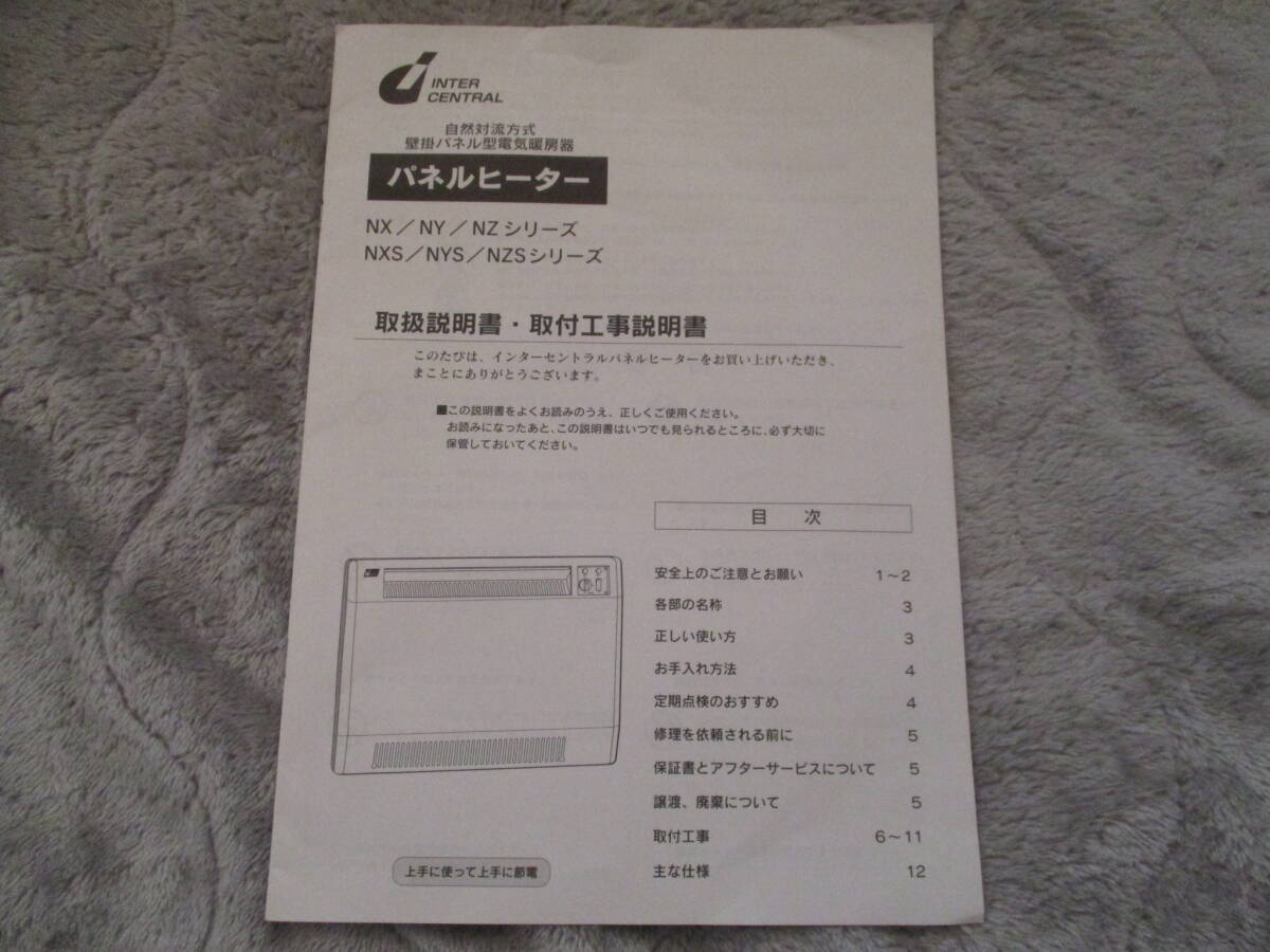 【良品】インターセントラルNX-1000 パネルヒーター 壁掛けヒーター 取付金物付属 1000W 単相100V 200V兼用