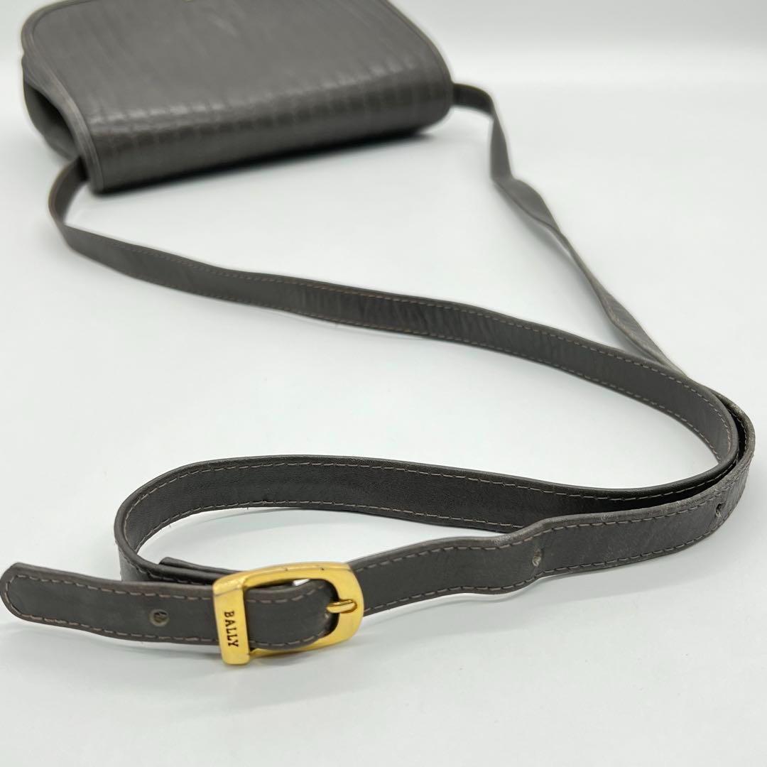 【良品】BALLY バリー オールレザー ショルダーバッグ 斜めがけ サコッシュ クロスボディ レザー 通勤 通学 グレー レディース AB950505C