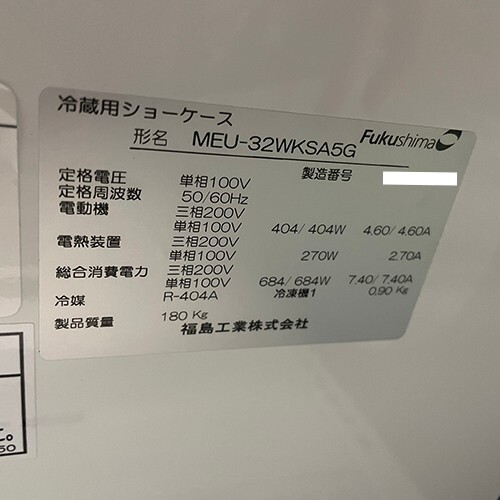 メーカー:フクシマガリレイ(福島工業)