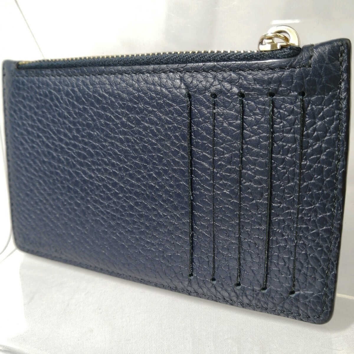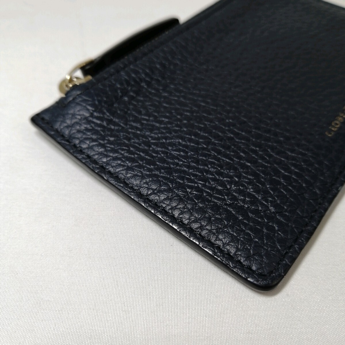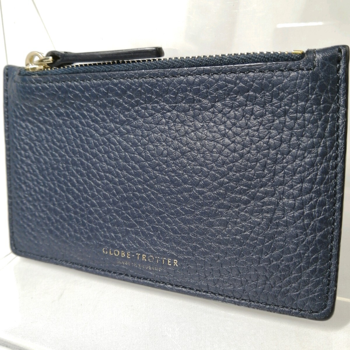 $ 美品 $ 希少 ◆ GLOBE-TROTTER ◆ グローブトロッター ◆ 本革 レザー製・ コインケース カード入れ 財布 ◆ ロゴ ◆ 濃紺 ネイビー系
