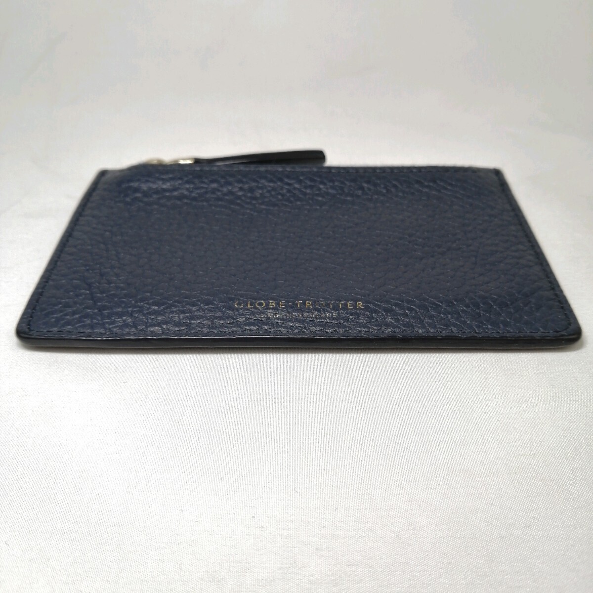 GLOBE TROTTER   正規品!     レアデザイン!          30240S608 ◆        濃紺色!  ネイビー系!         ファスナー式 小銭入れ!    本革 レザー素材!   ゴールド色 ロゴ入り!     コインケース!  カードケース!  ウォレット!     英国製!           男女兼用 可能です。            【  ゆうパケット(匿名配送) ・ 送料無料  】