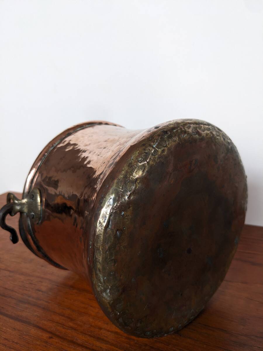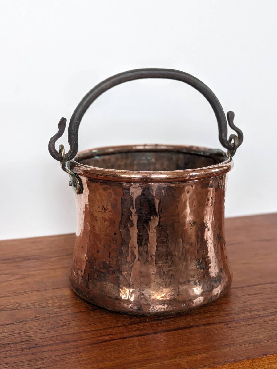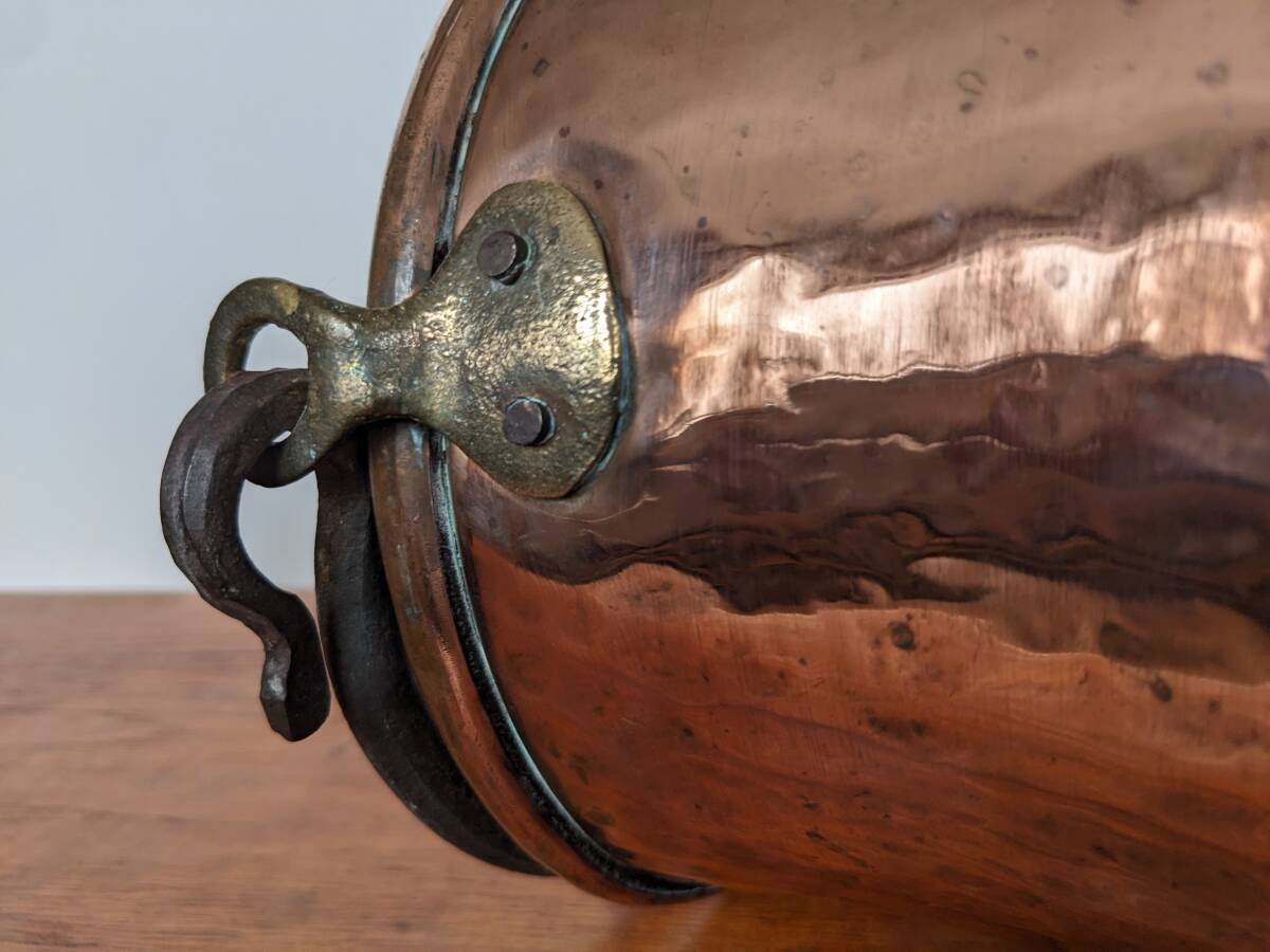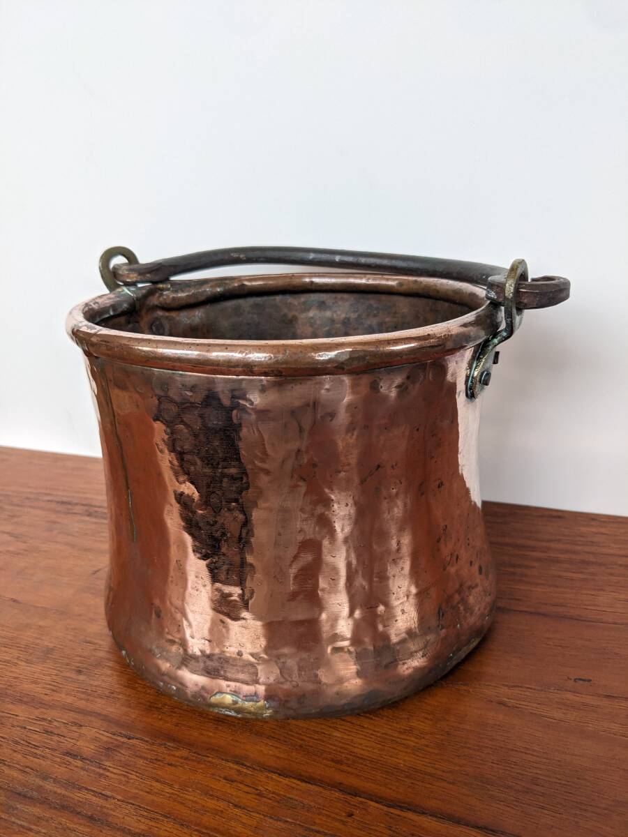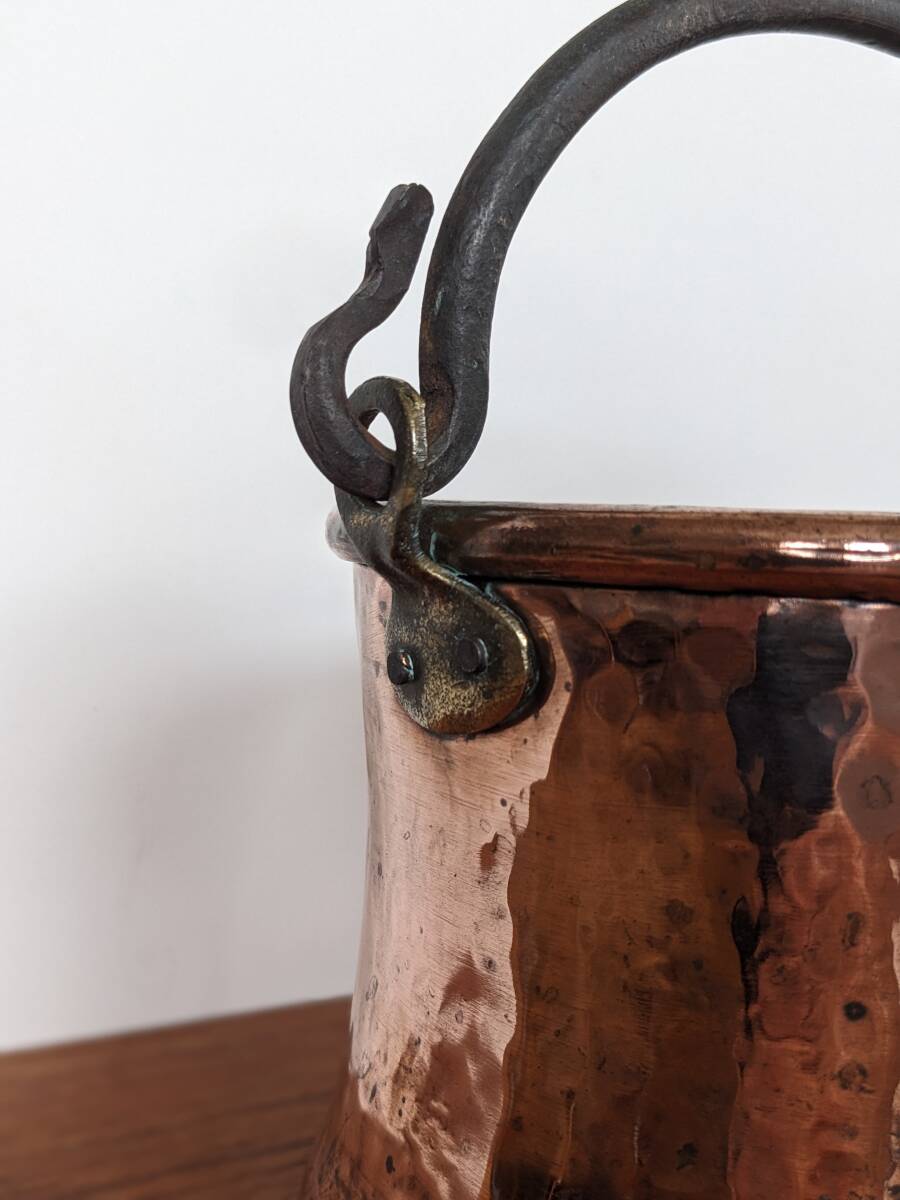 貴重な古い北欧の打ち出し吊下げ取っ手付き銅鍋 (寸胴 鍋)です
